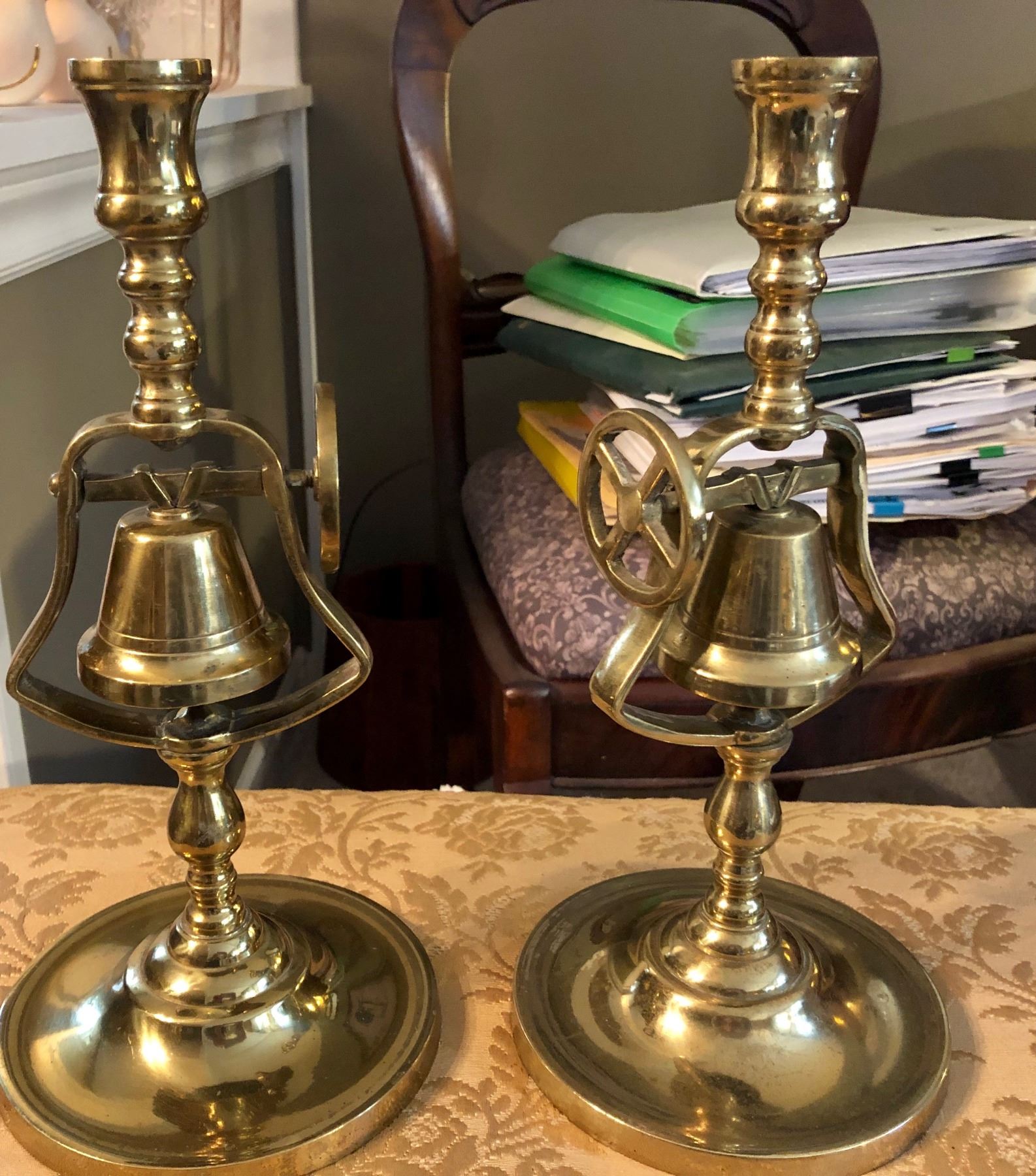 VINTAGE PAIR OF TAVERN BELL BRASS CANDLESTICKS