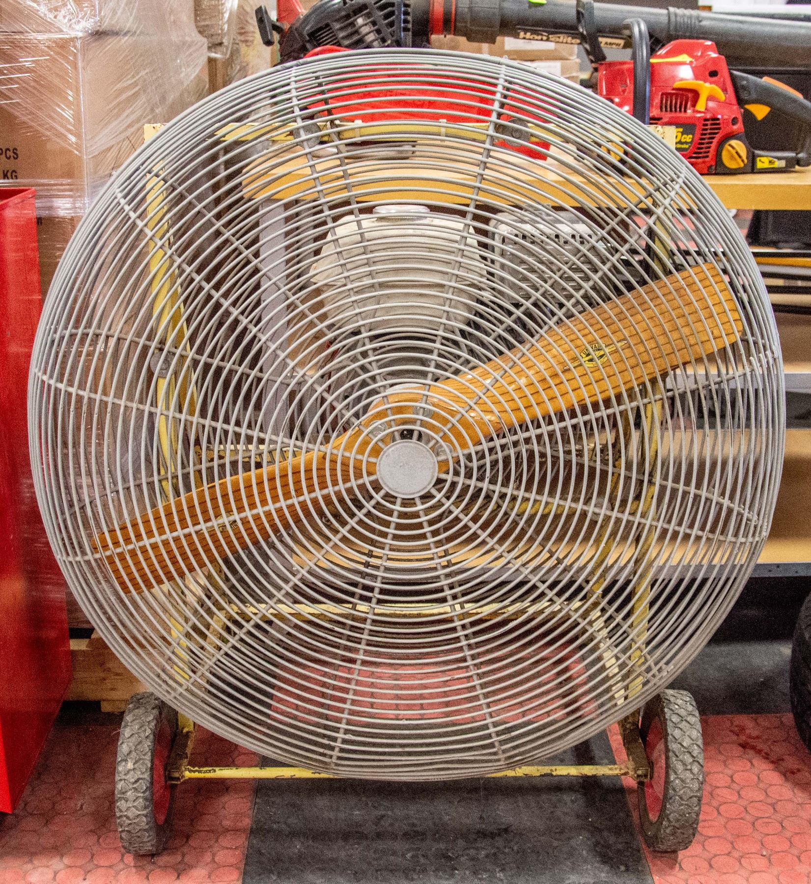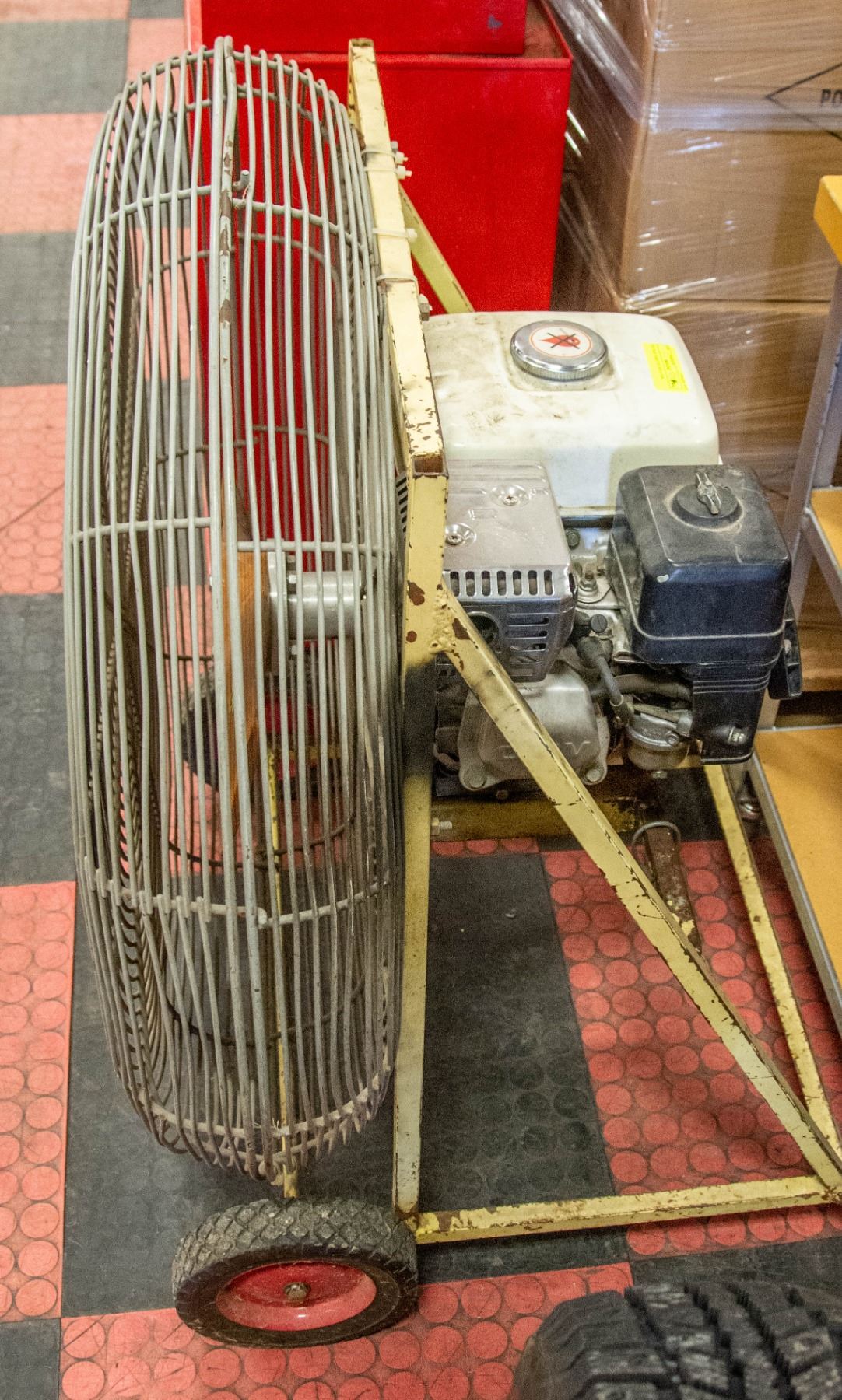 VINTAGE PARCUTE INFLATOR ATTACHED IS HONDA 5.0 HP GX 140 WITH VINTAGE PROPELLER HAS ITS OWN SAFETY CAGE WITH STAND - TESTED