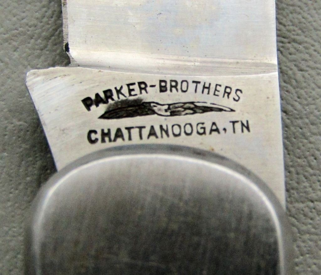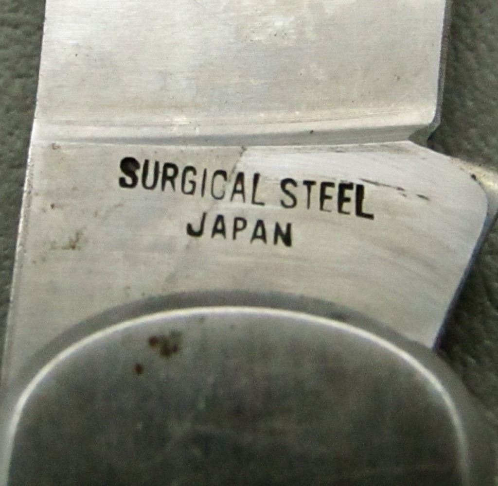 CHATTANOOGA, TENNESSEE. SURGICAL STEEL JAPAN. IN GOOD CONDITION WITH NO BLADE WOBBLE. LEATHER CASE. NEEDS A LIGHT CLEANING.