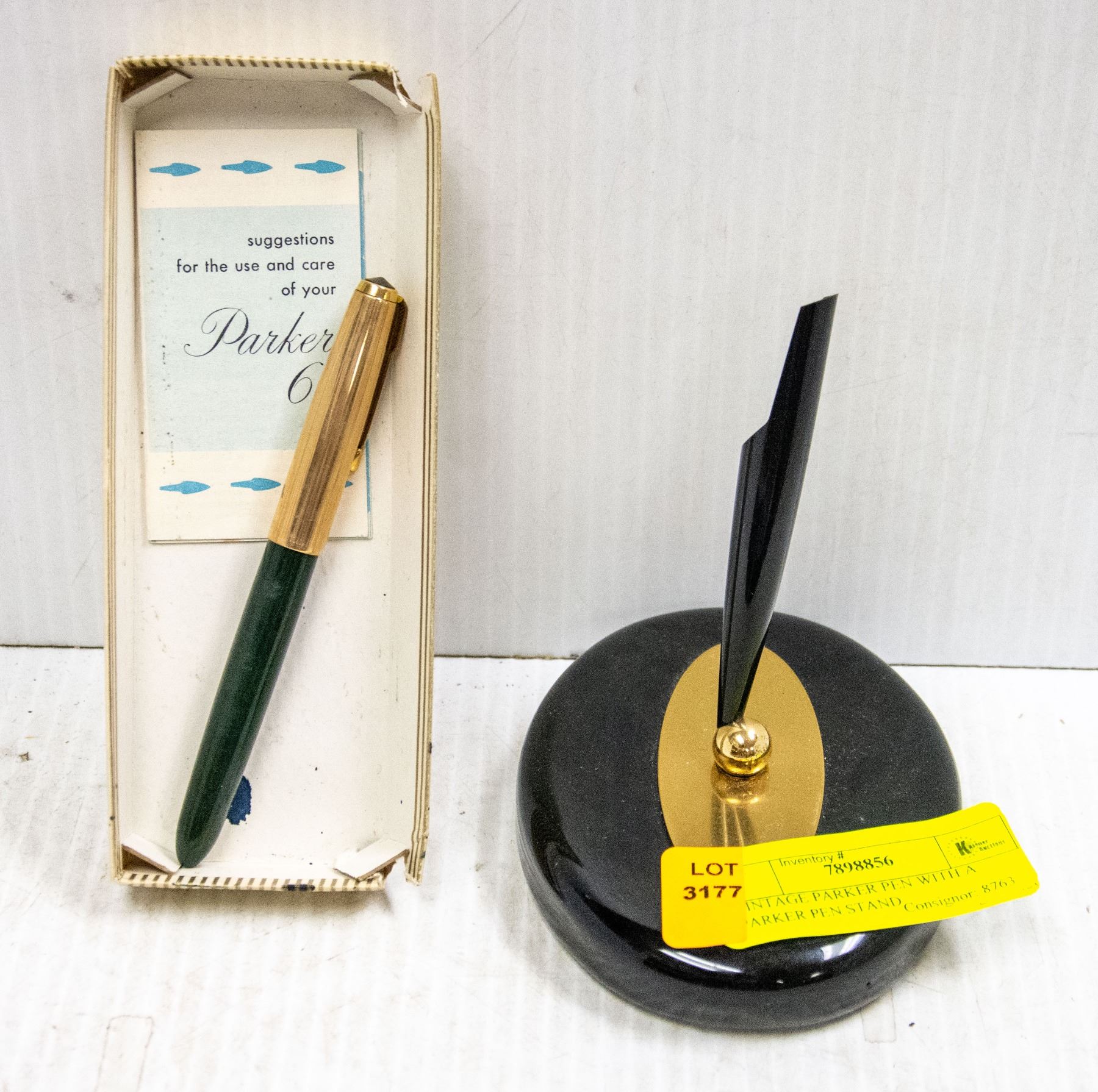 VINTAGE PARKER PEN WITH A PARKER PEN STAND