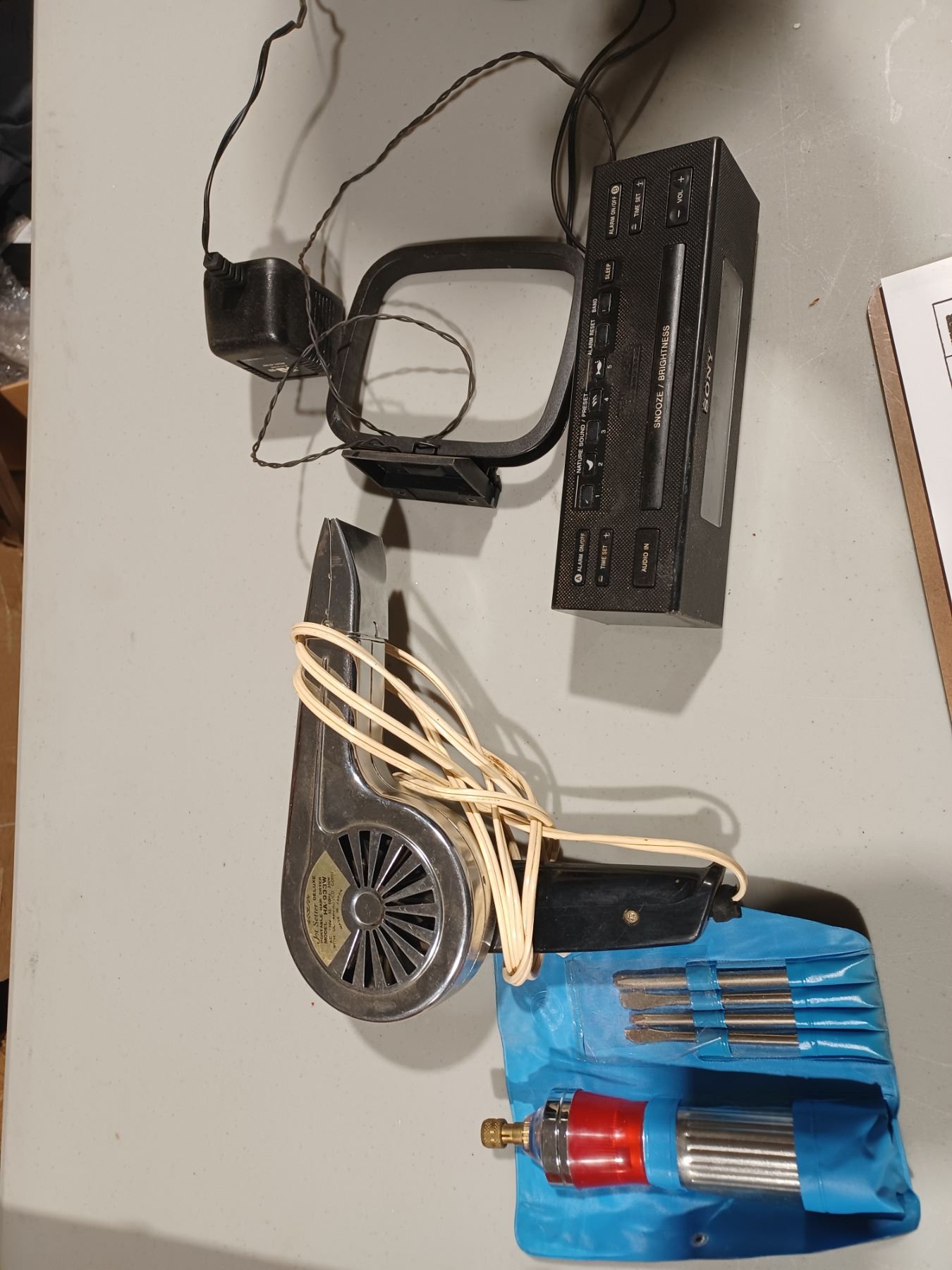 VINTAGE PARKER RISK GAME, JET SETTER MULTI TOOL MODEL HA933W HAIR DRYER, SONY RADIO