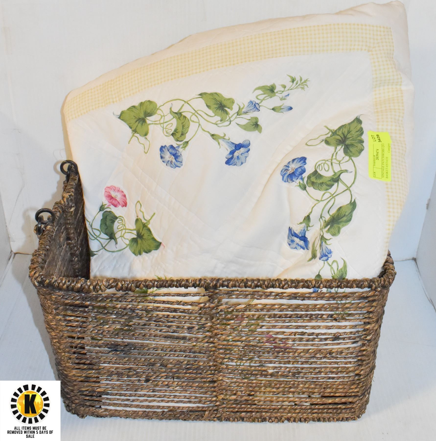 VINTAGE PATCHWORK QUILT IN BASKET-ESTATE
