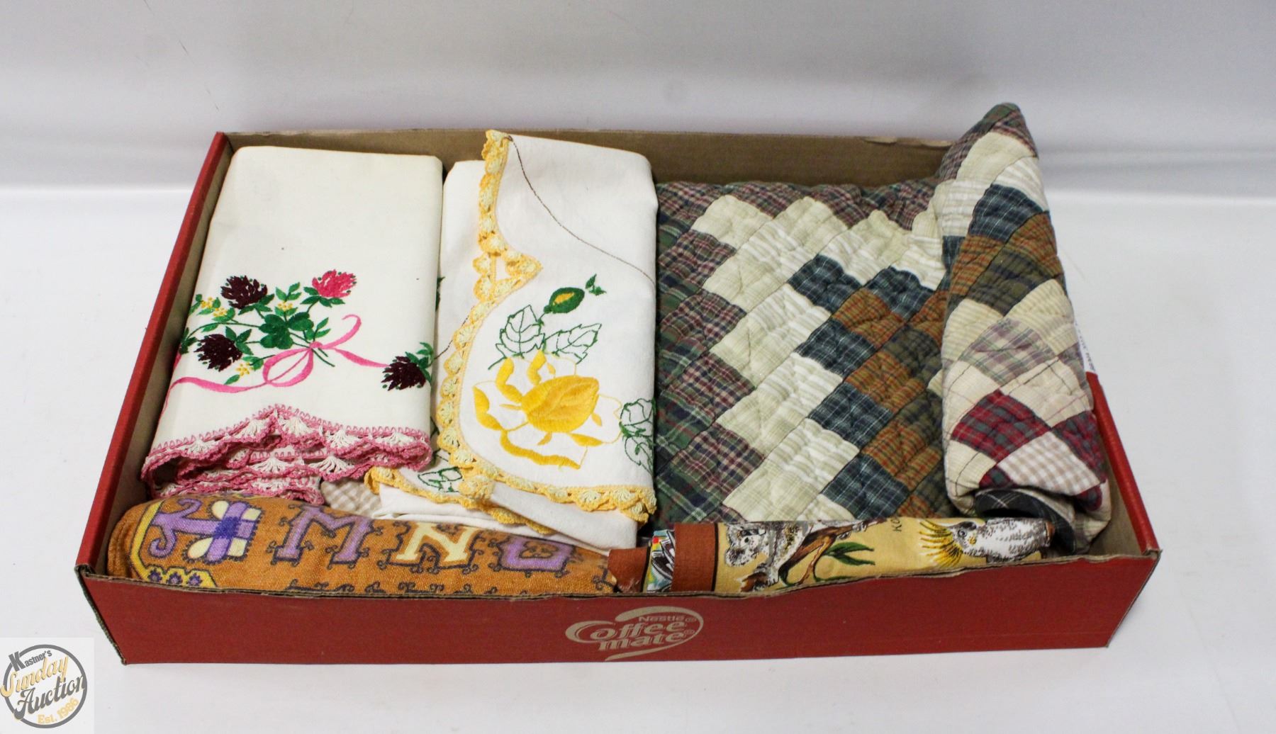 VINTAGE PATCHWORK QUILT & VINTAGE LINENS TOGETHER