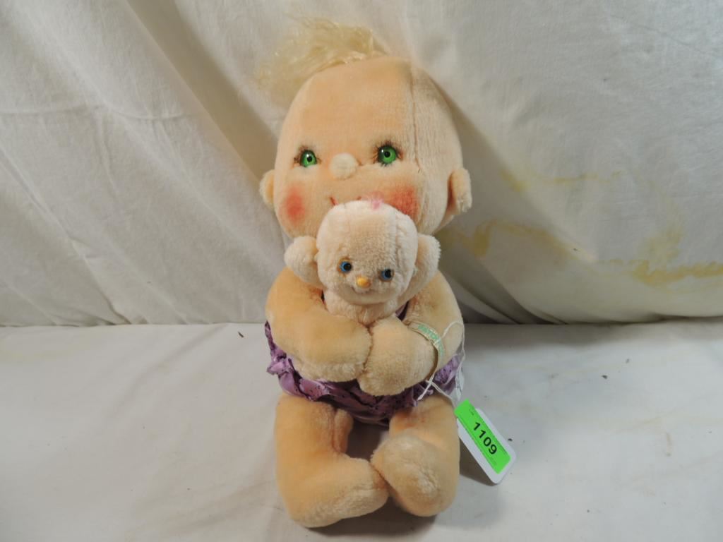 STUFFED DOLL KENNER VINTAGE DOLL. BLOND CURL GREEN EYES SMALL LITTLE DOLL INCLUDED. GOOD CONDITION AS SHOWN SEE PHOTO FOR MORE DETAILS.