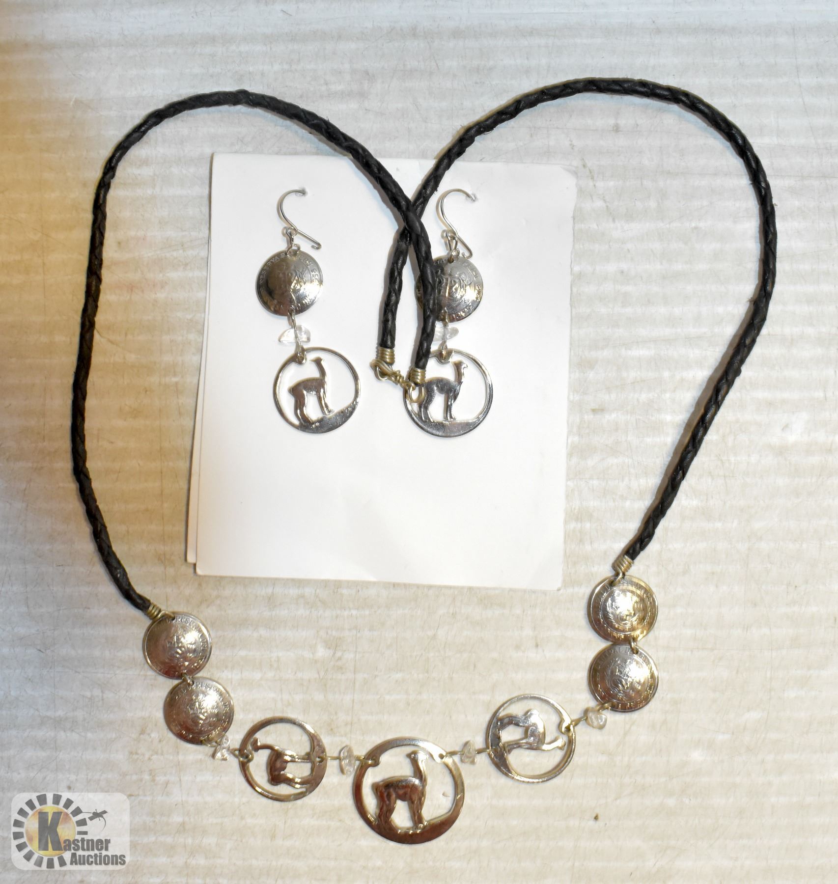 VINTAGE PERUVIAN COIN NECKLACE & EARRING SET