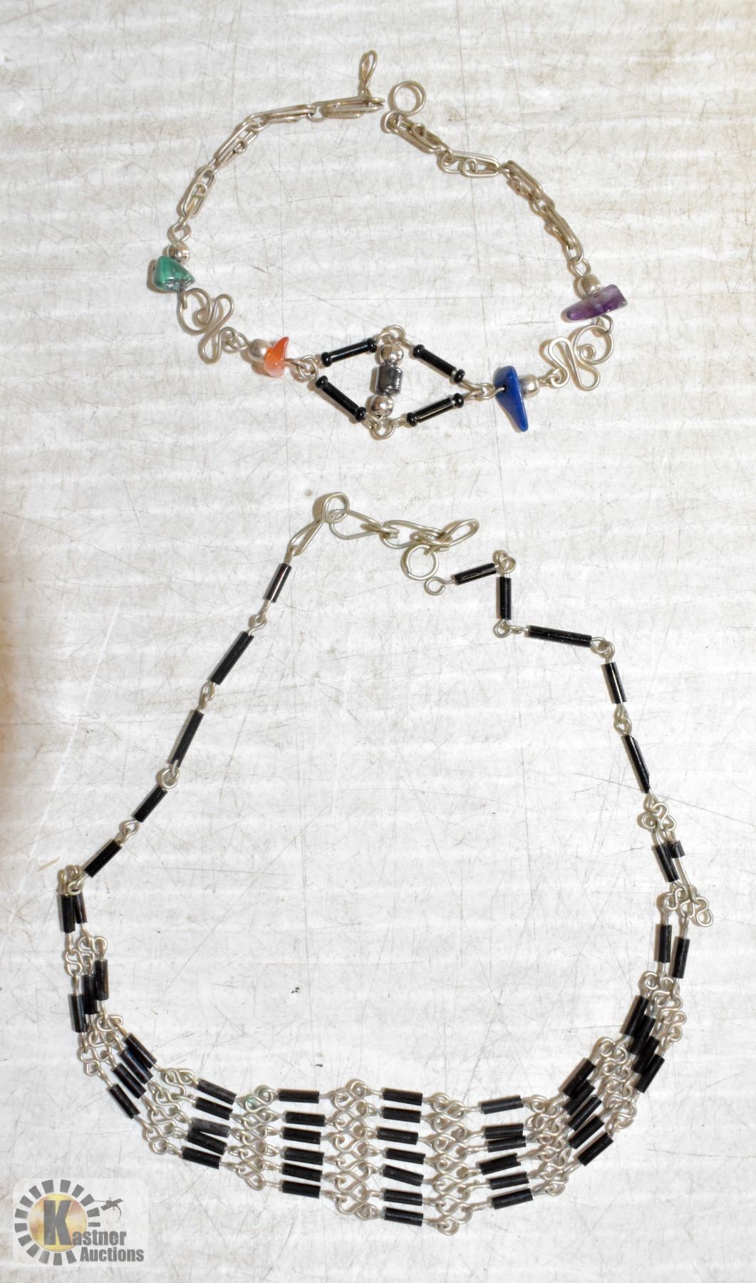 VINTAGE PERUVIAN WEAVED BRACELET & STONE NECKLACE