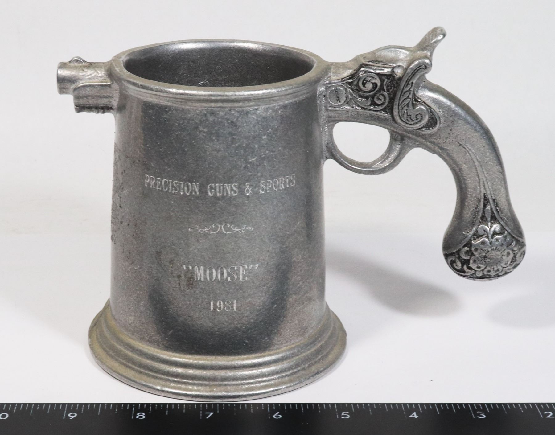 VINTAGE PEWTER HANDGUN SHAPED MUG GOOD CONDITION