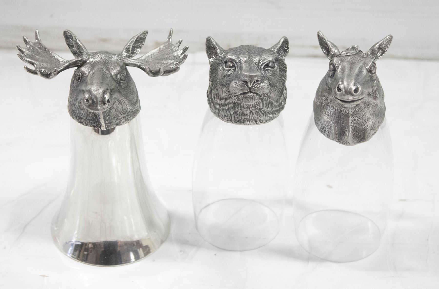 VINTAGE PEWTER HUNTING THEME GLASSES, SET OF 3