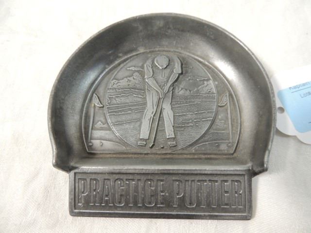 CHANGE TRAY IN PEWTER THAT DOUBLES AS A PRACTICE PUTTER HOLE FOR THE GOLFER IN THE HOUSE. NICE! MEASURES 4.5" X 4.5". AS SHOWN.