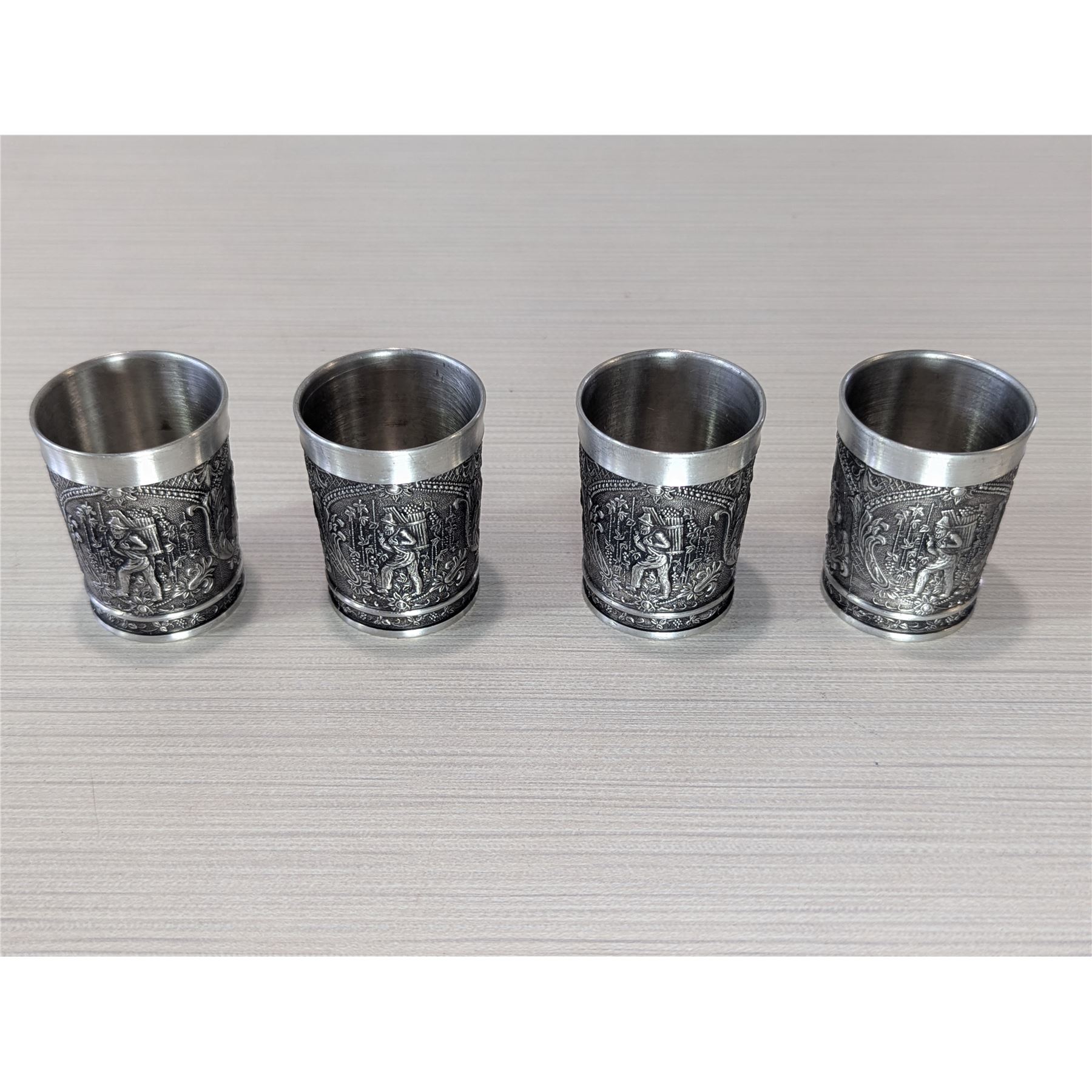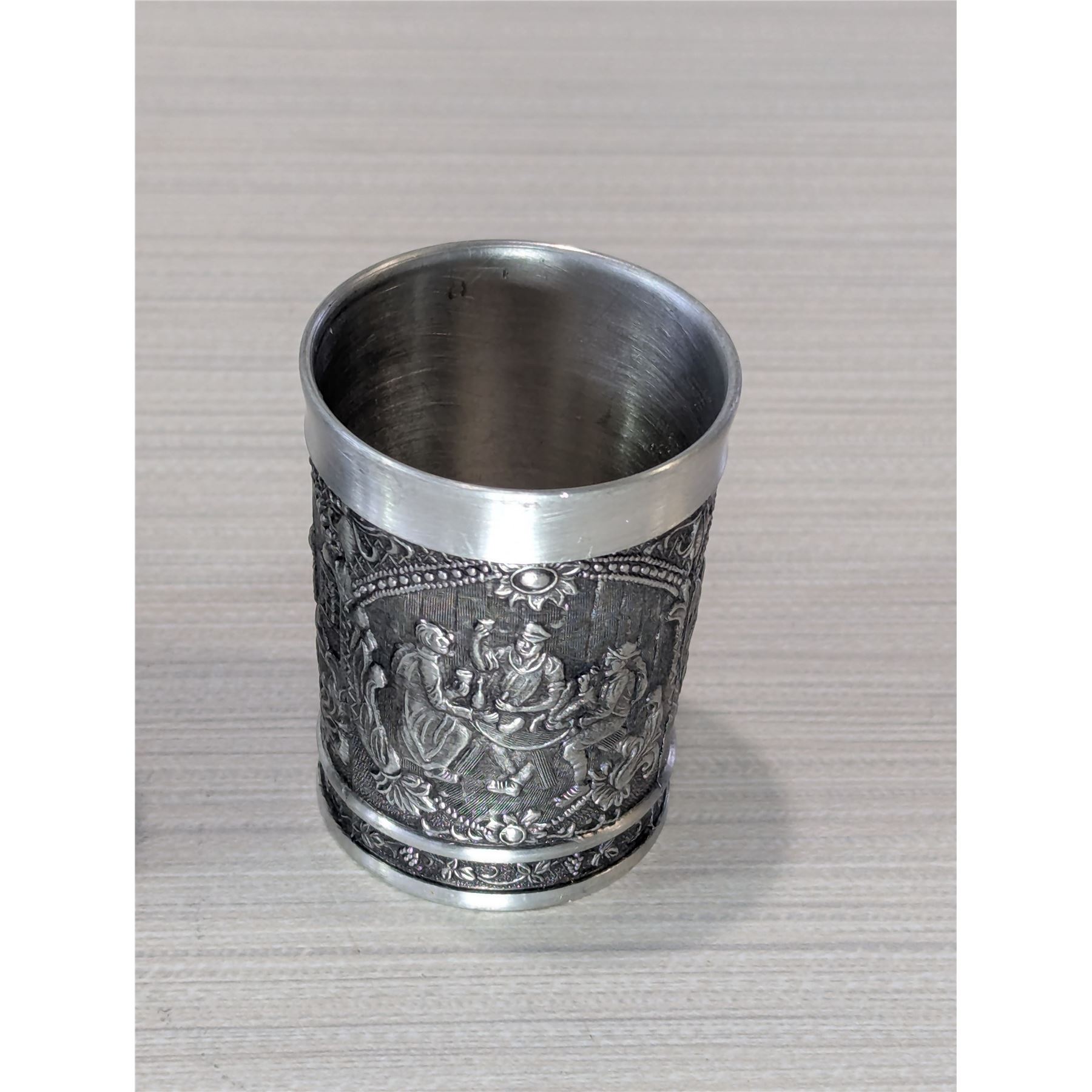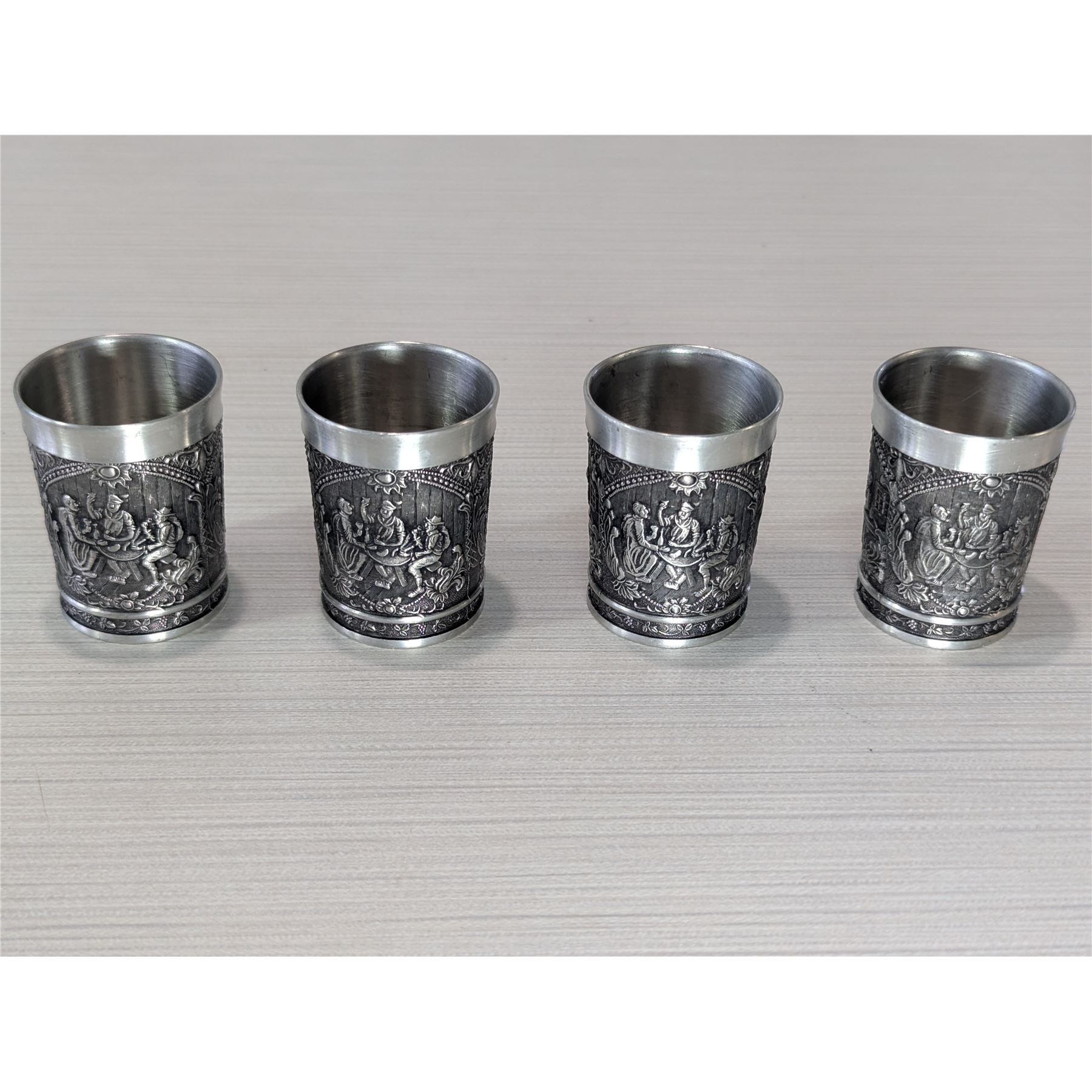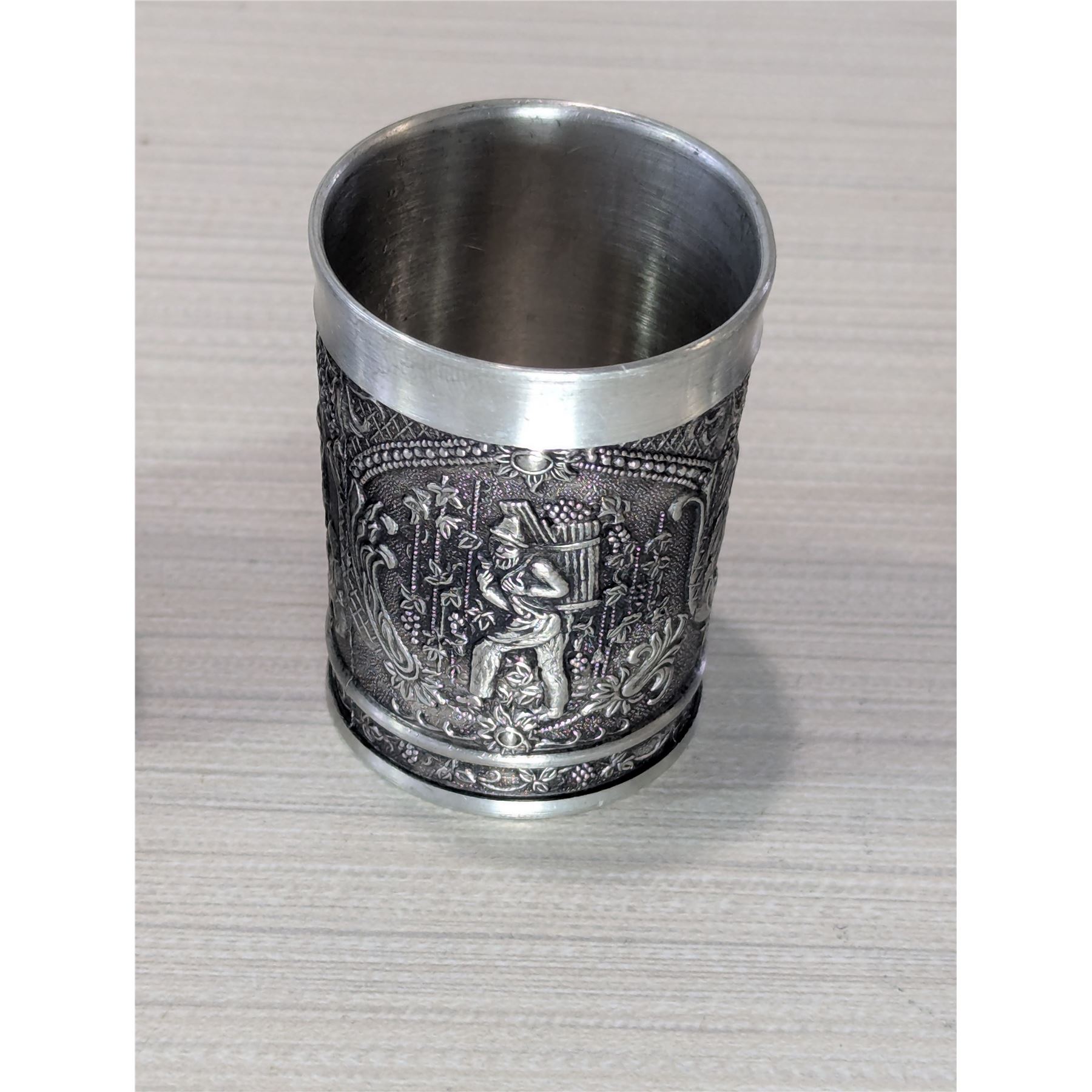 VINTAGE PEWTER SCHNAPPS SHOT GLASSES made in West Germany. Each tankard depicts three scenes.