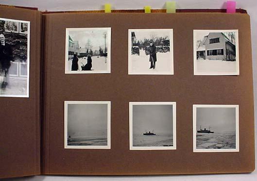 VINTAGE PHOTO ALBUM W/ PHOTOS - Incl. People in Costumes, Ships, Street Scenes, Buildings, Eiffel Tower, Old Record Player, Old Radio, Black Americana, Wedding, Babies, Eating Ice Cream, More!