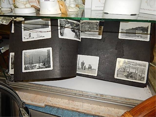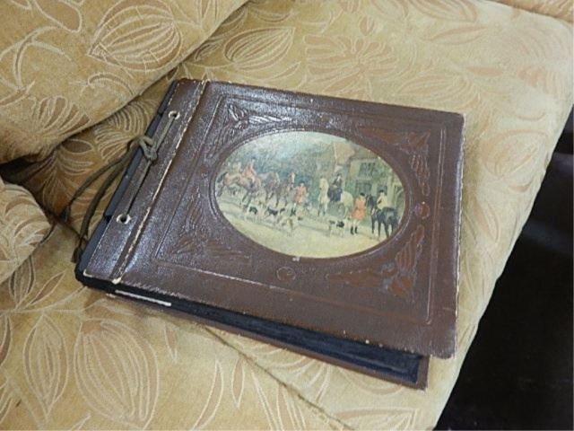 VINTAGE PHOTO ALBUMN - VICTORIAN PICTURE ON FRONT - SOME PICTURES