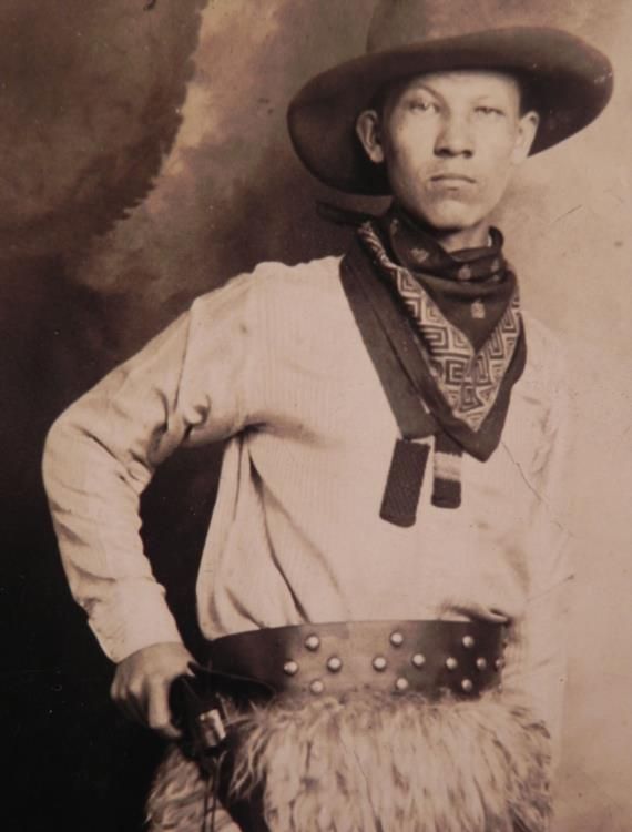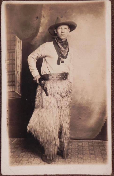 VINTAGE PHOTO POSTCARD OF COWBOY WITH SIX-GUN AND CHAPS * UN-USED *