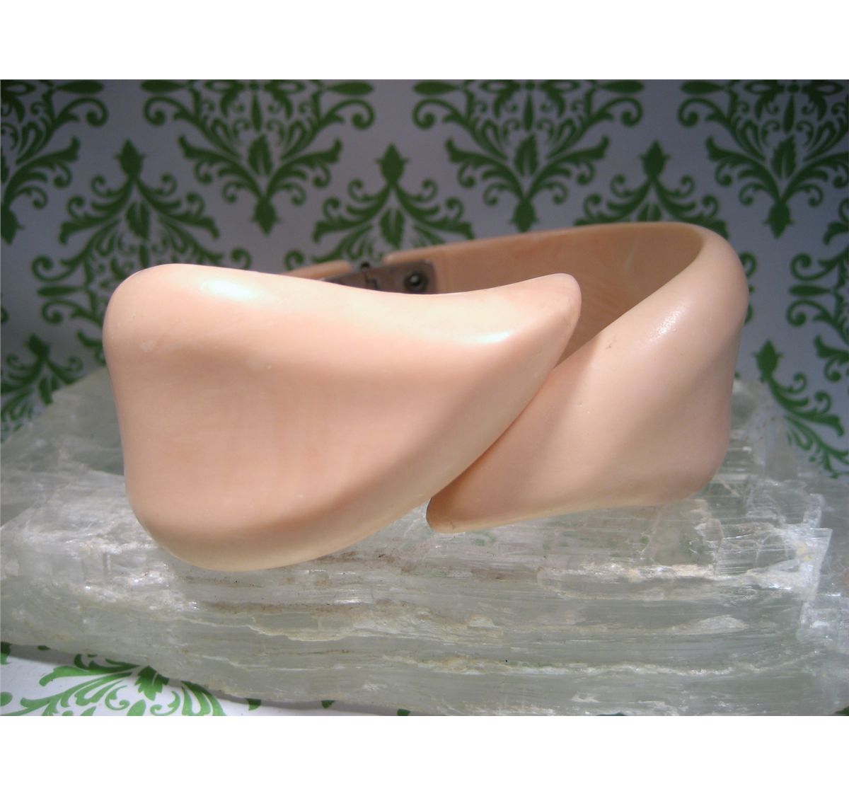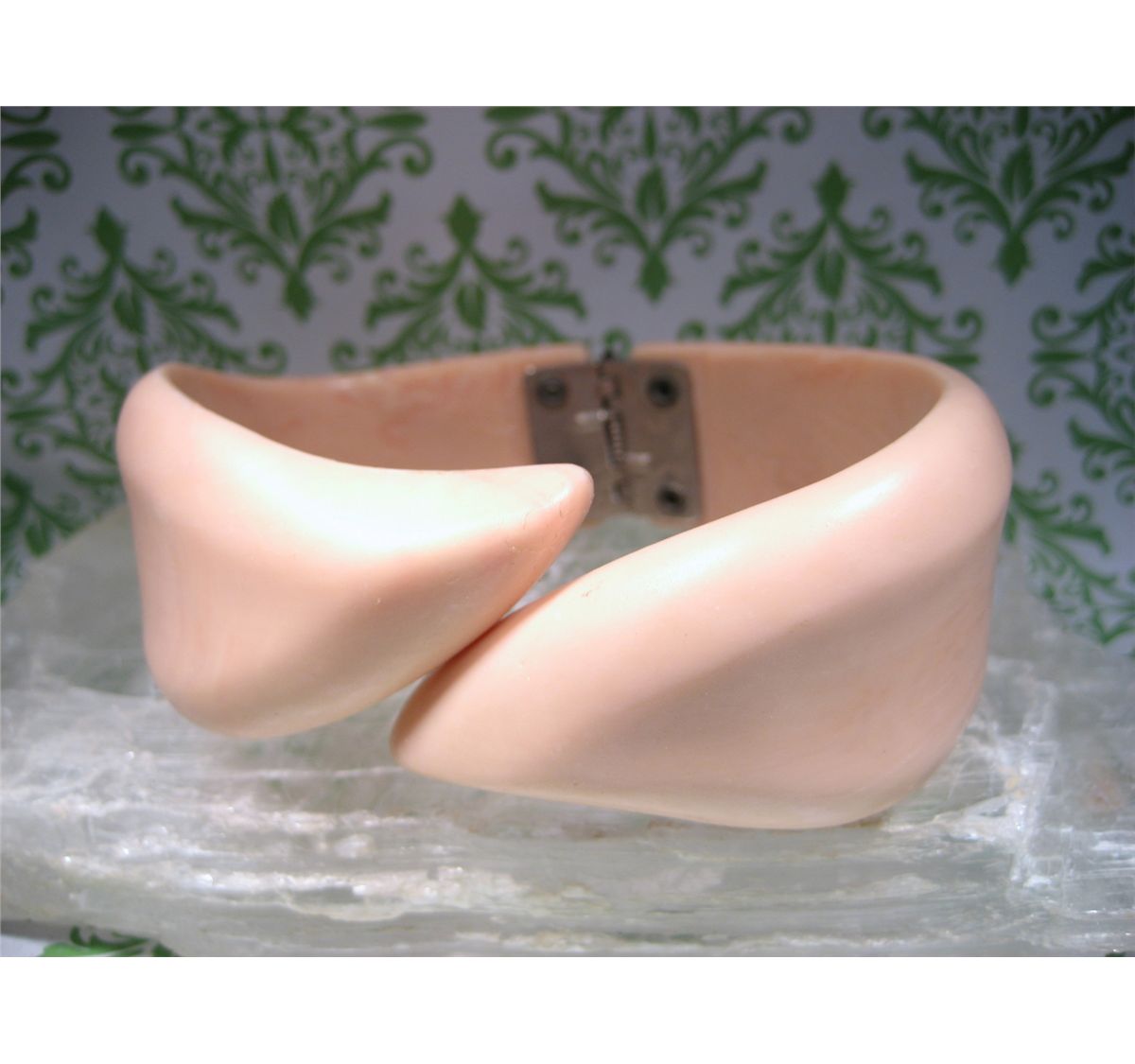 (2) VINTAGE PINK WHITE BAKELITE CUFF BRACELET