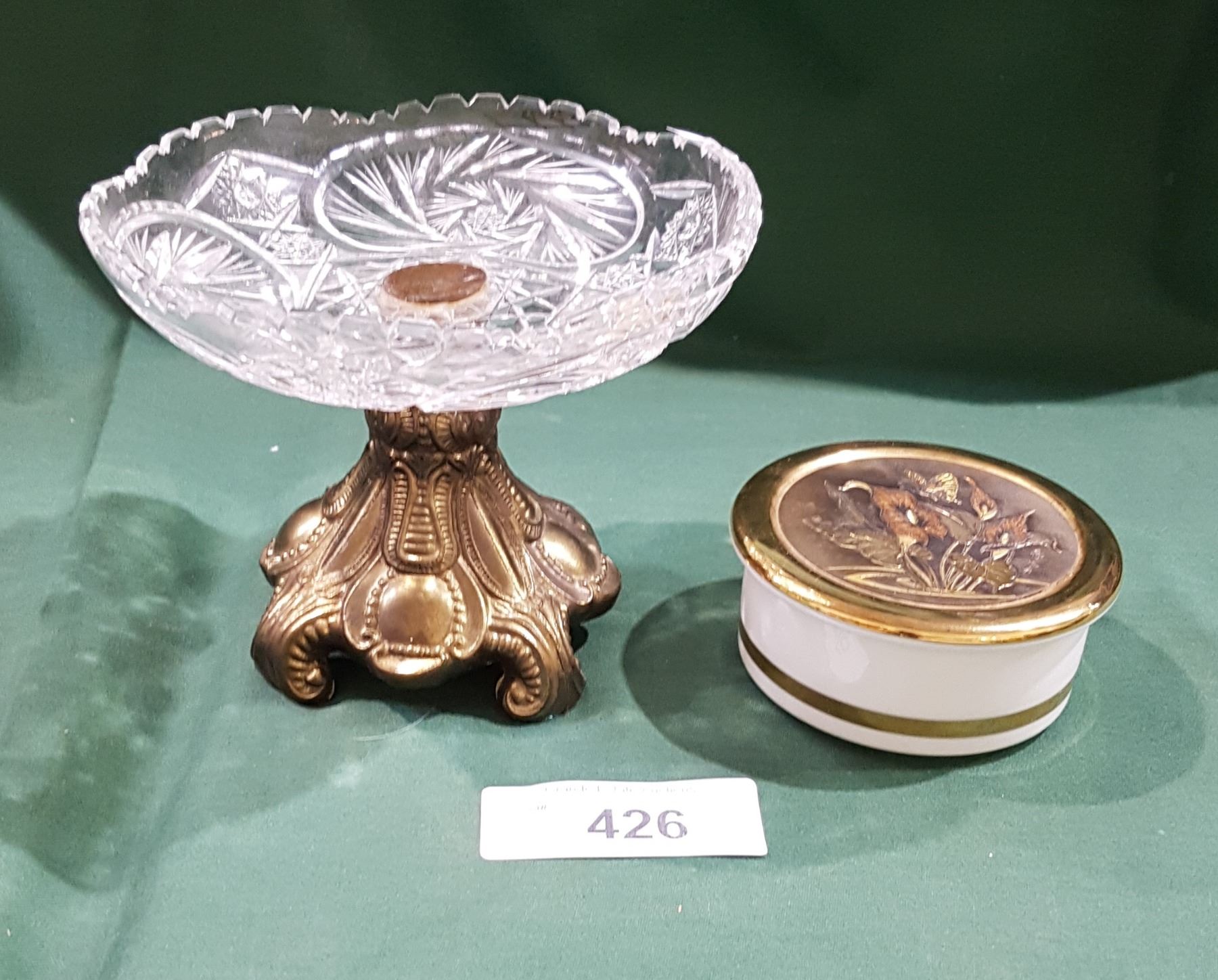 VINTAGE PINSHEEL CRYSTAL & BRASS CANDY DISH & CHOKIN VANITY BOX