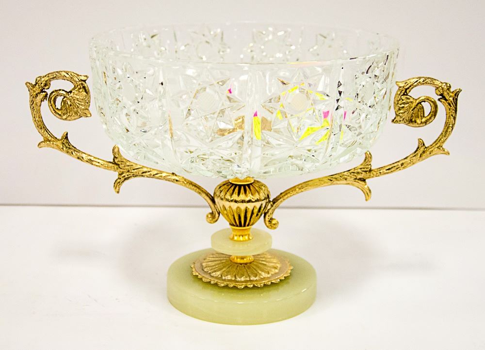 VINTAGE PINWEEL CRYSTAL CANDY DISH W/ MARBLE BASE