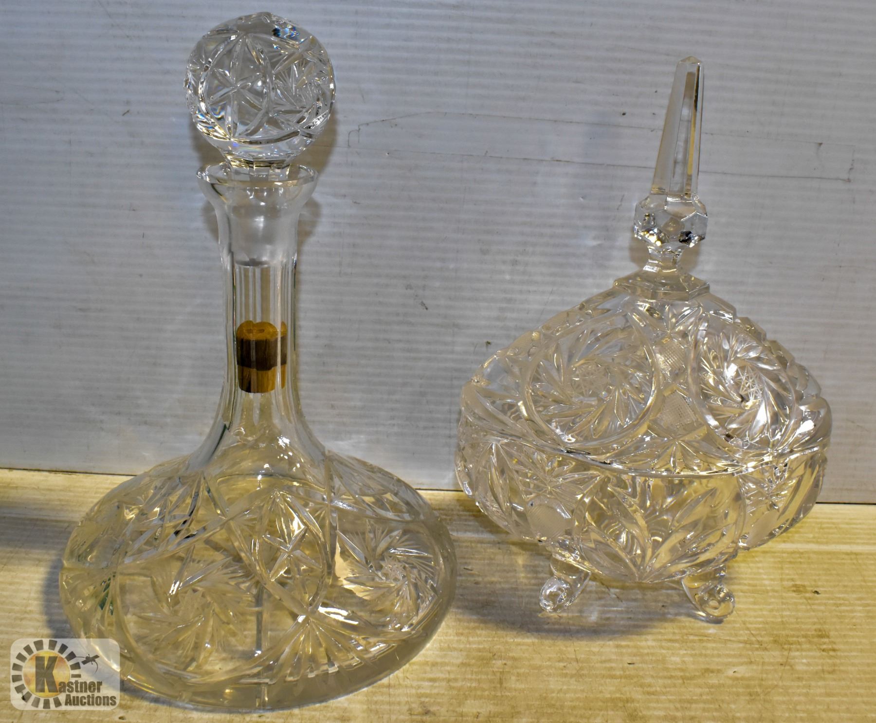 VINTAGE PINWHEEL CRYSTAL DECANTER & CANDY DISH SET