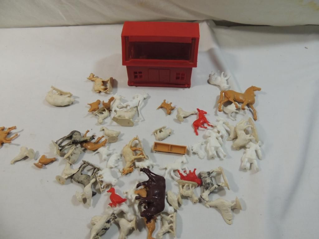 PIONEER TOYS FARM ANIMAL TOY PLASTIC TOY FIGURES PLASTIC BARN. AS SHOWN SEE PHOTO FOR MORE DETAILS.