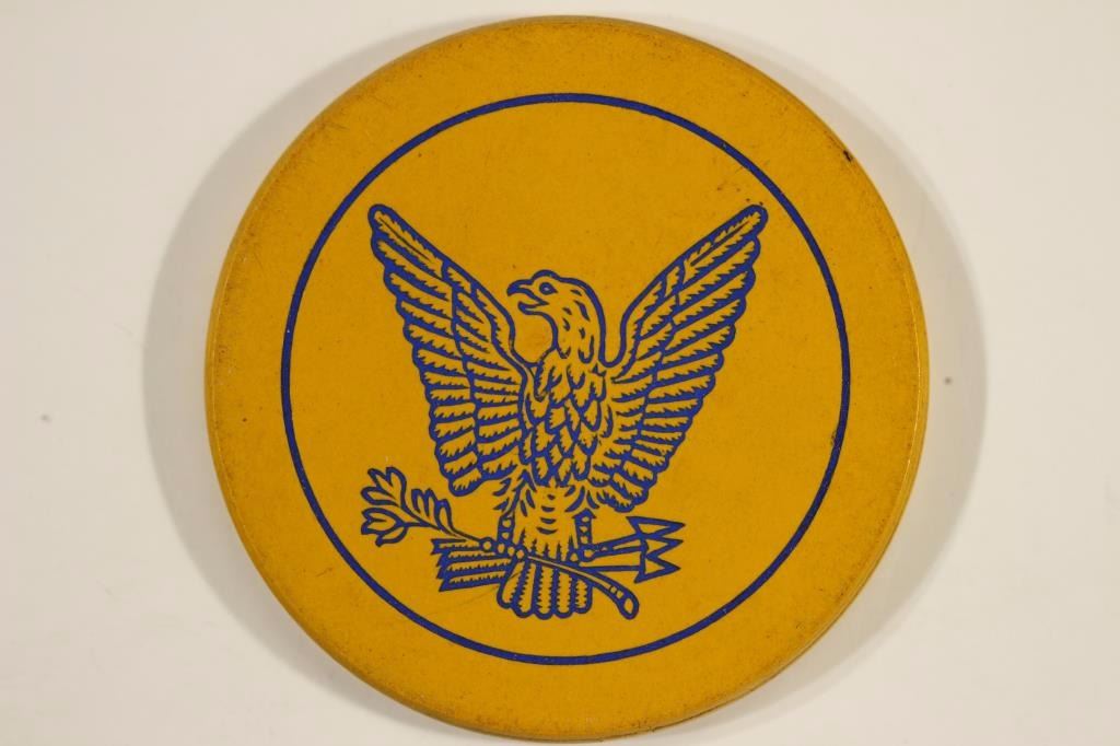VINTAGE POKER CHIP MUSTARD WITH BLUE EAGLE
