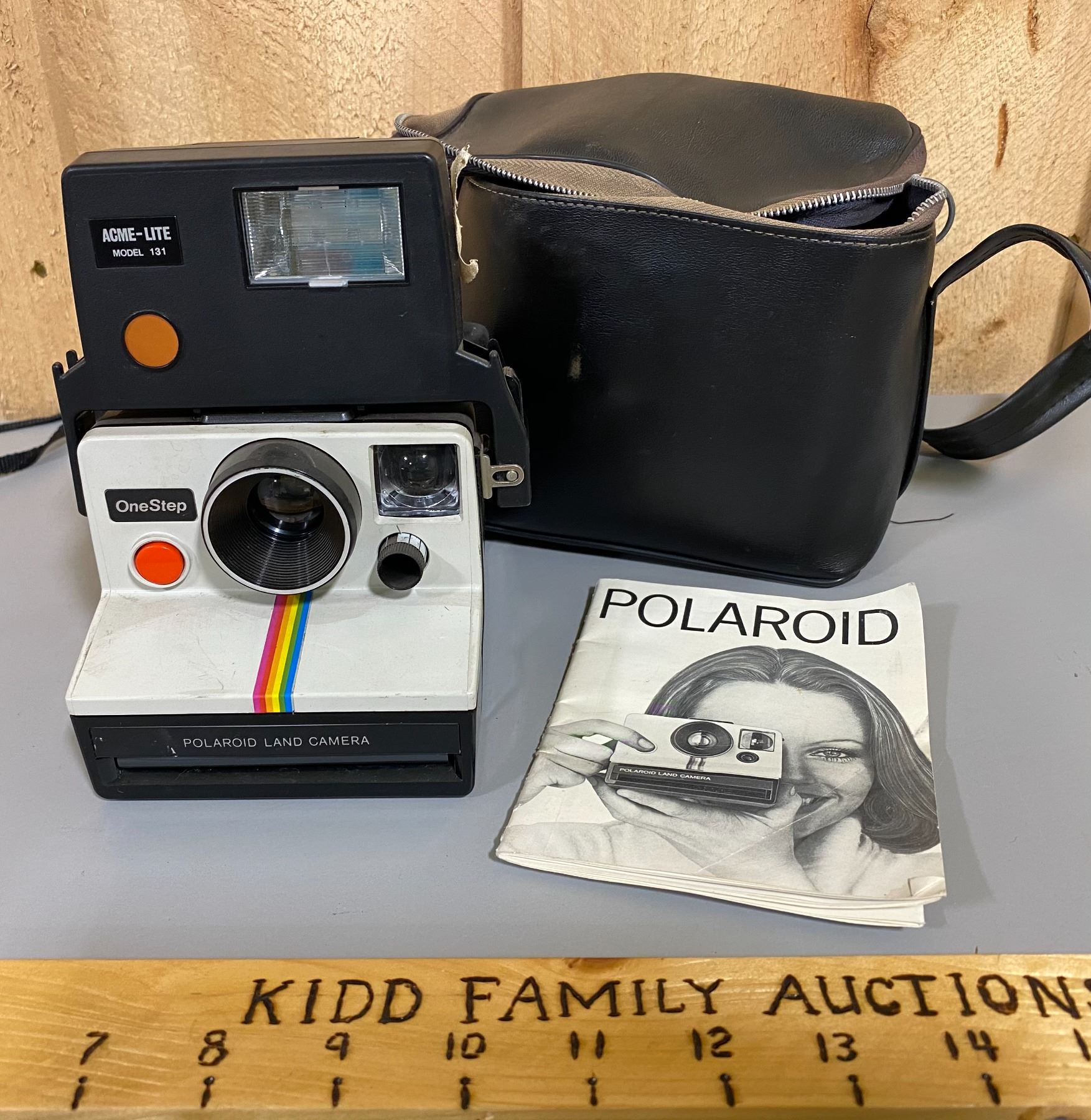 VINTAGE POLAROID CAMERA W/ ACME-LITE FLASH, CASE