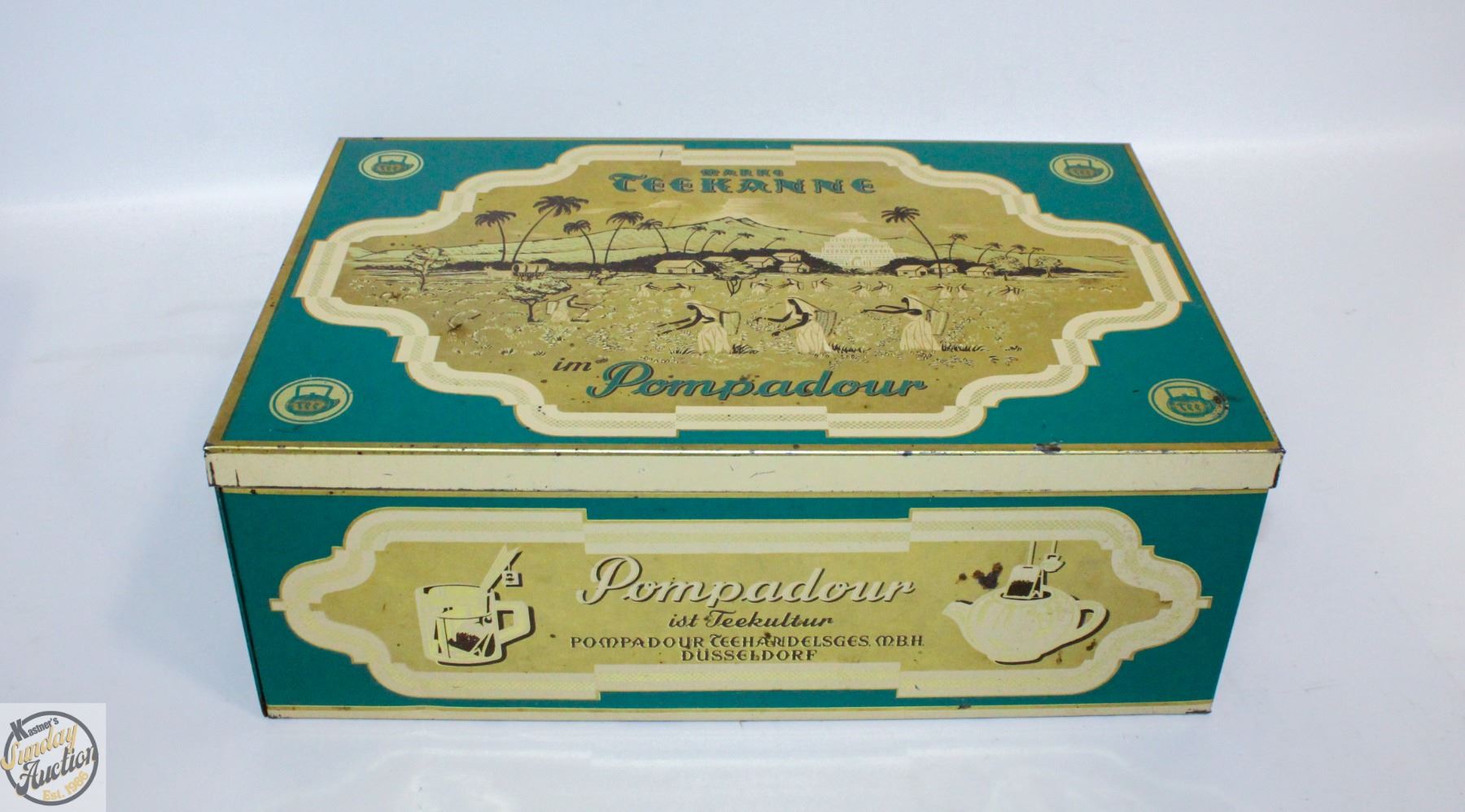 DUSSELDORF TEA TIN TEAL & BEIGE 12.5" W X 8.5"