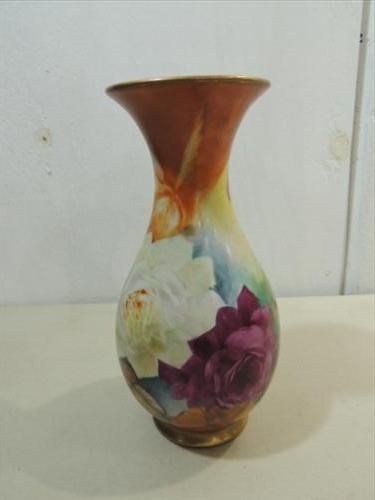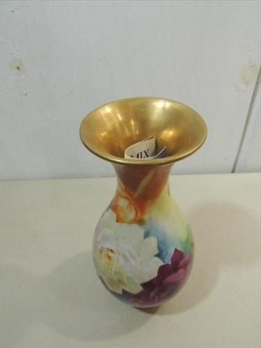 VINTAGE PORCELAIN ART VASE BY LINDA MEKSHES 10.5"H. HADN PAINTED. CARD INCLUDED. AS SHOWN. VIEW PICTURE FOR DETAIL.