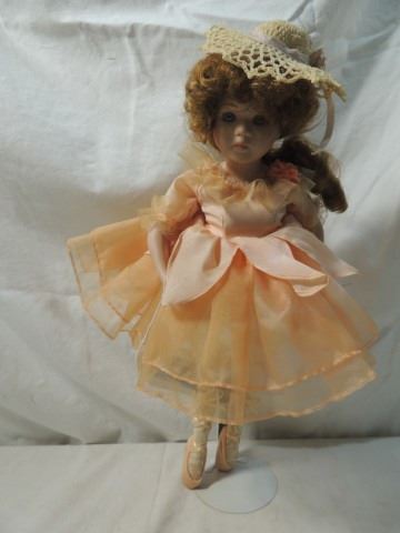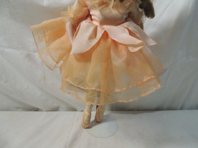 NICE VINTAGE BALLERINA DOLL, STANDS 16" TALL, ON STAND, AS SHOWN.