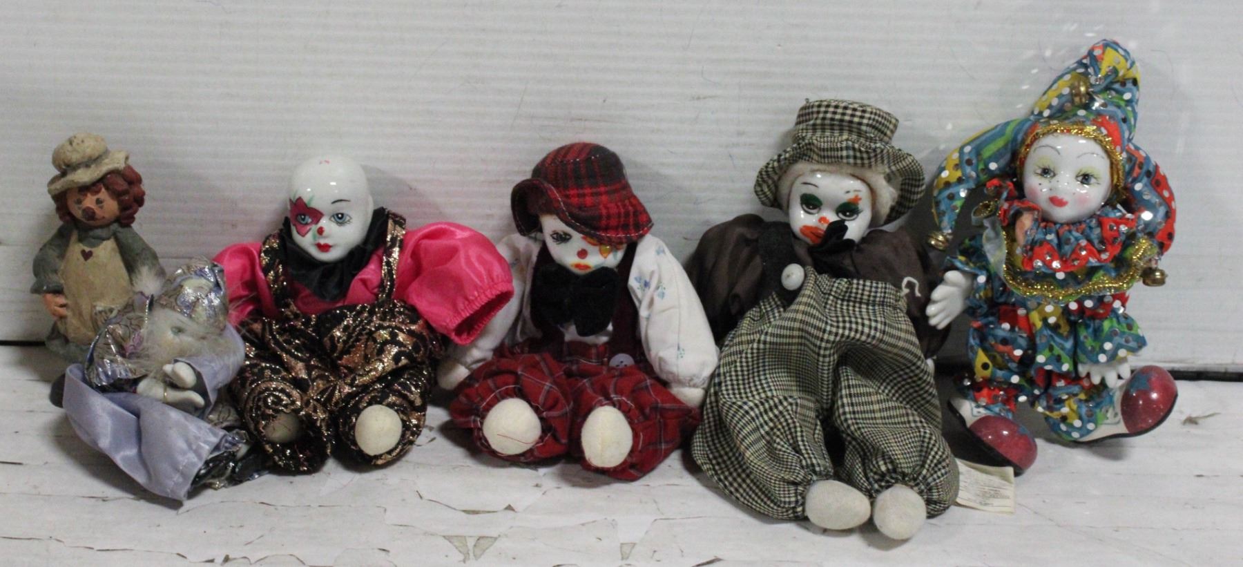 VINTAGE PORCELAIN CLOWN DOLLS SET OF 5