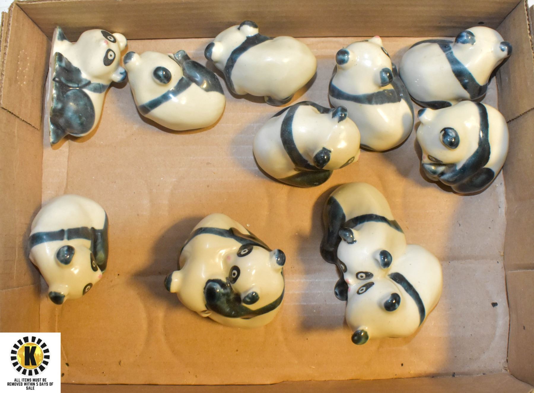 10 DIFFERENT HAND PAINTED PANADA FIGURINES EACH IS DIFFERENT, 2 INCHES -3.25 INCHES.