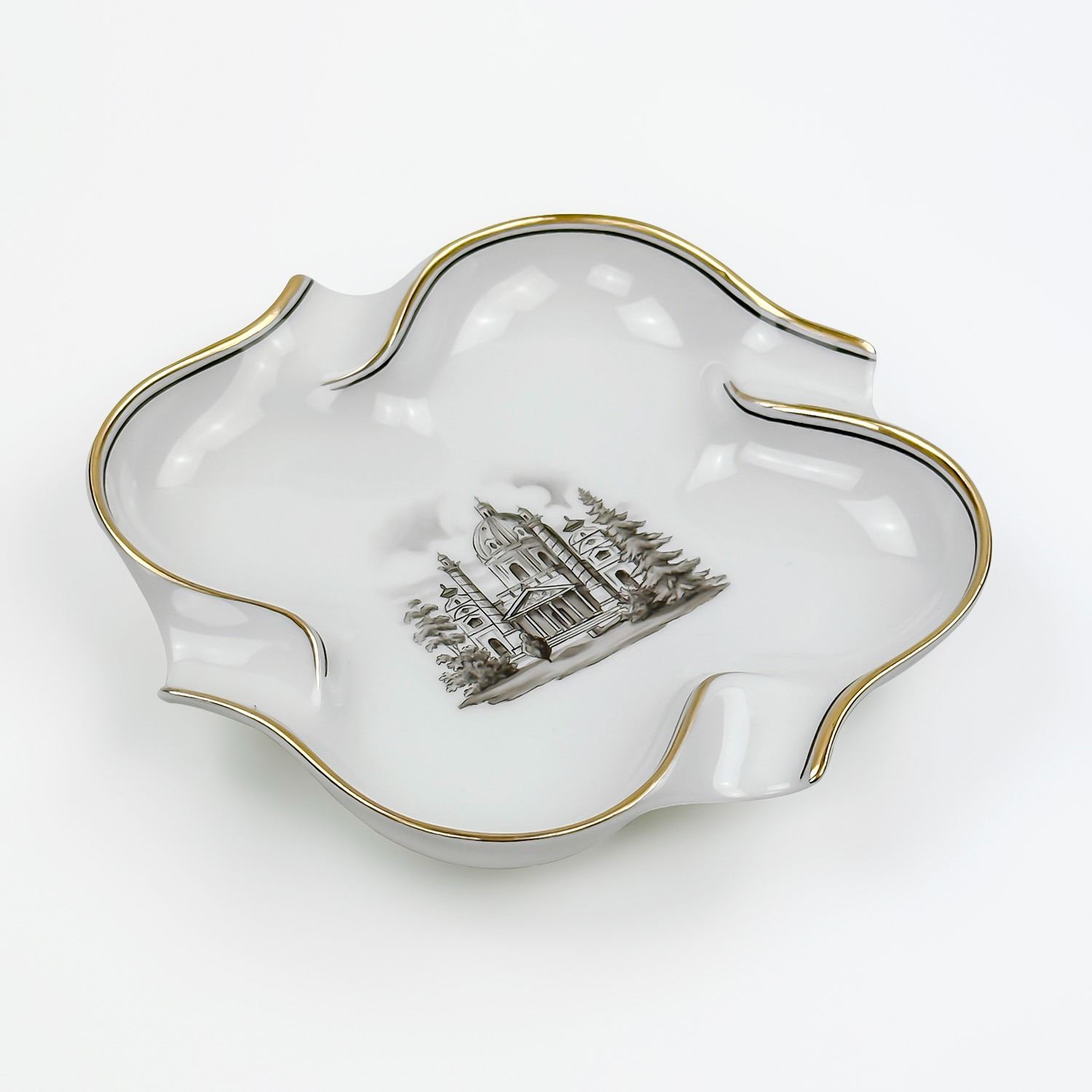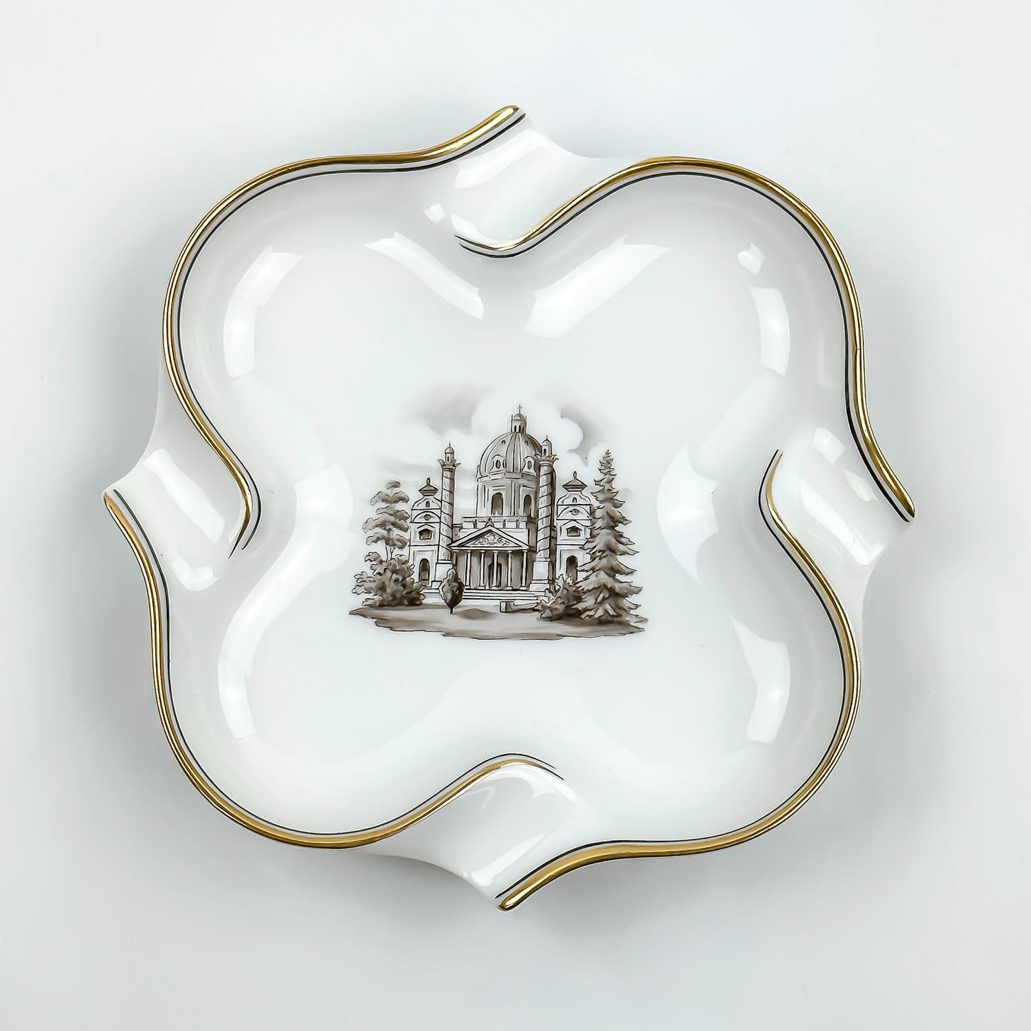 #8832 -VINTAGE WIEN ASHTRAY WITH GOLD TRIM. MEASURES: 5.5” (14 CM) SQUARE