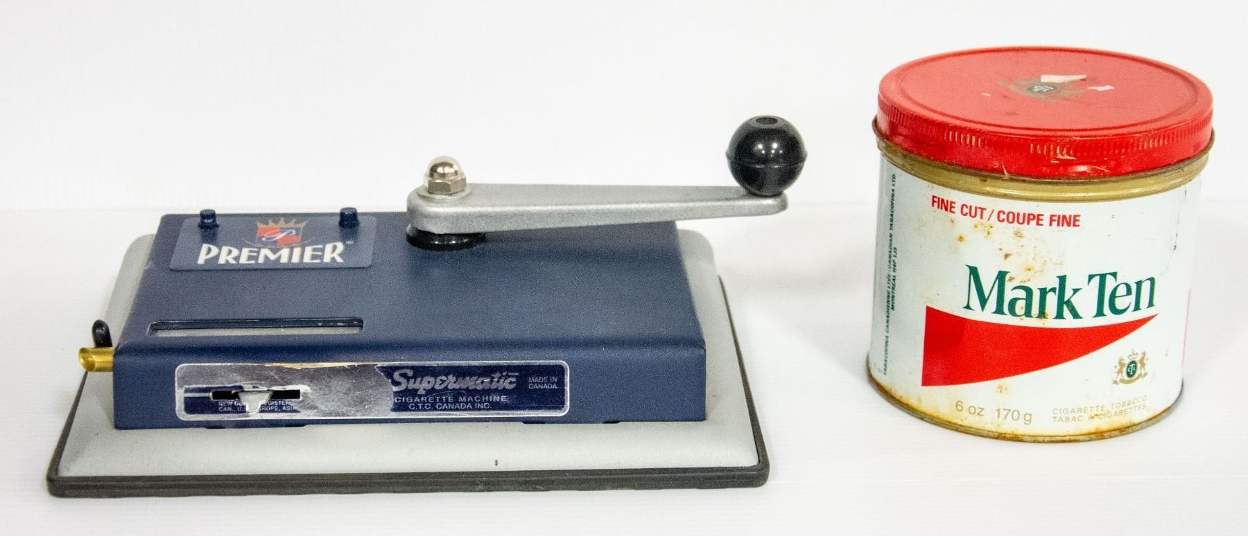 CIGARETTE MAKING ROLLING MACHINE W/NUMBER 7 CIGARETTE TIN CAN