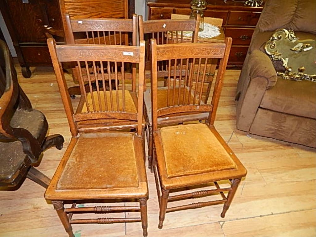 VINTAGE PRESS BACK CHAIRS - 4 X BID