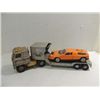 VINTAGE PRESSED METAL NASCAR TRUCK, TRAILOR & CAR