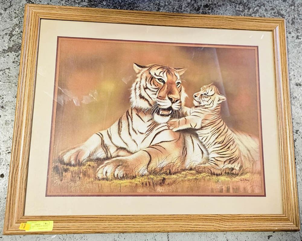 VINTAGE PRINT "BENGAL TIGER & CUB" 32 X 25"