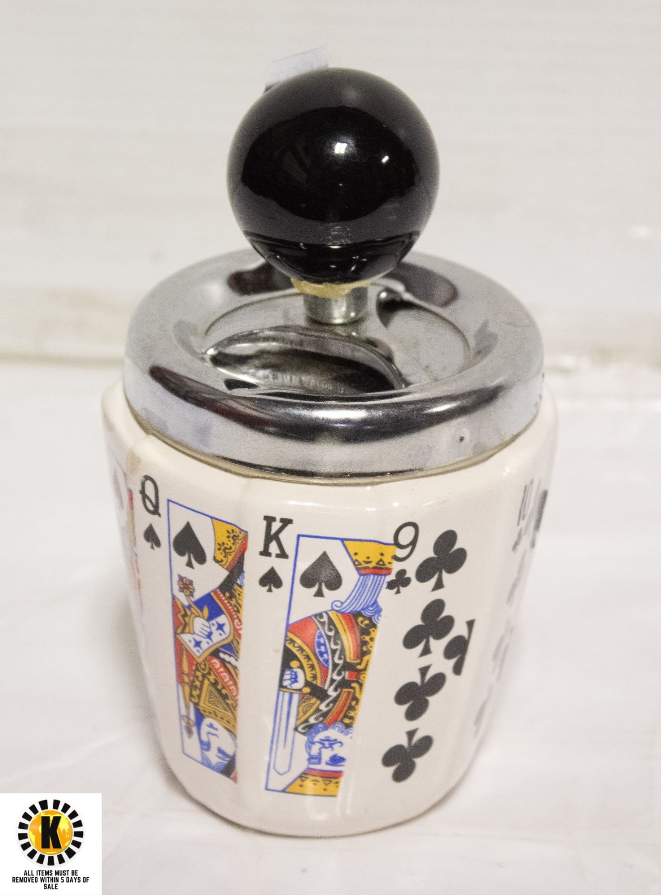 VINTAGE PROTABLE ASHTRAY WITH POKER CARDS DESIGN