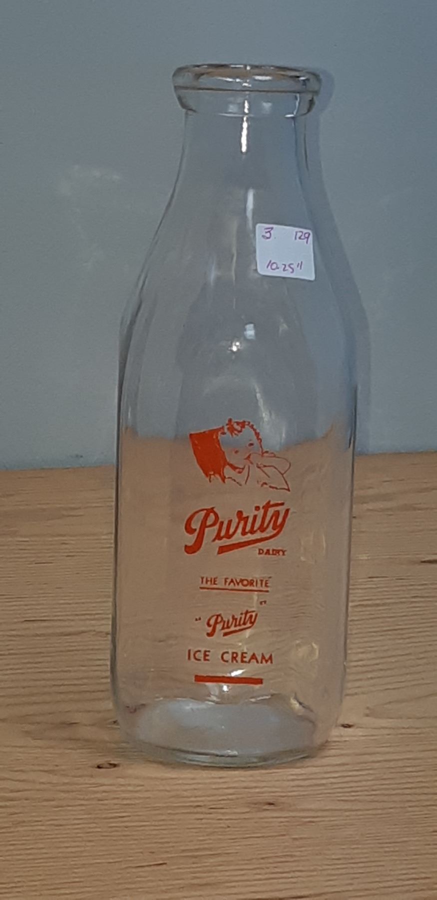 VINTAGE "PURITY DAIRIES" MILK BOTTLE 10.25" TALL