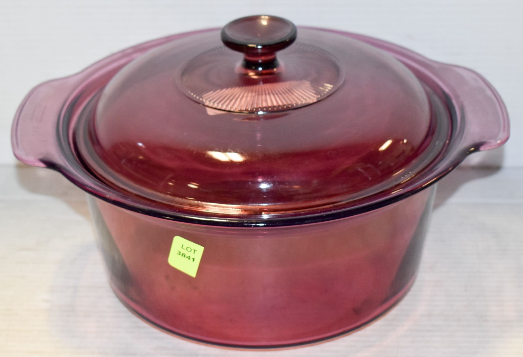 VINTAGE PURPLE TONE PYREX COOKPOT WITH LID