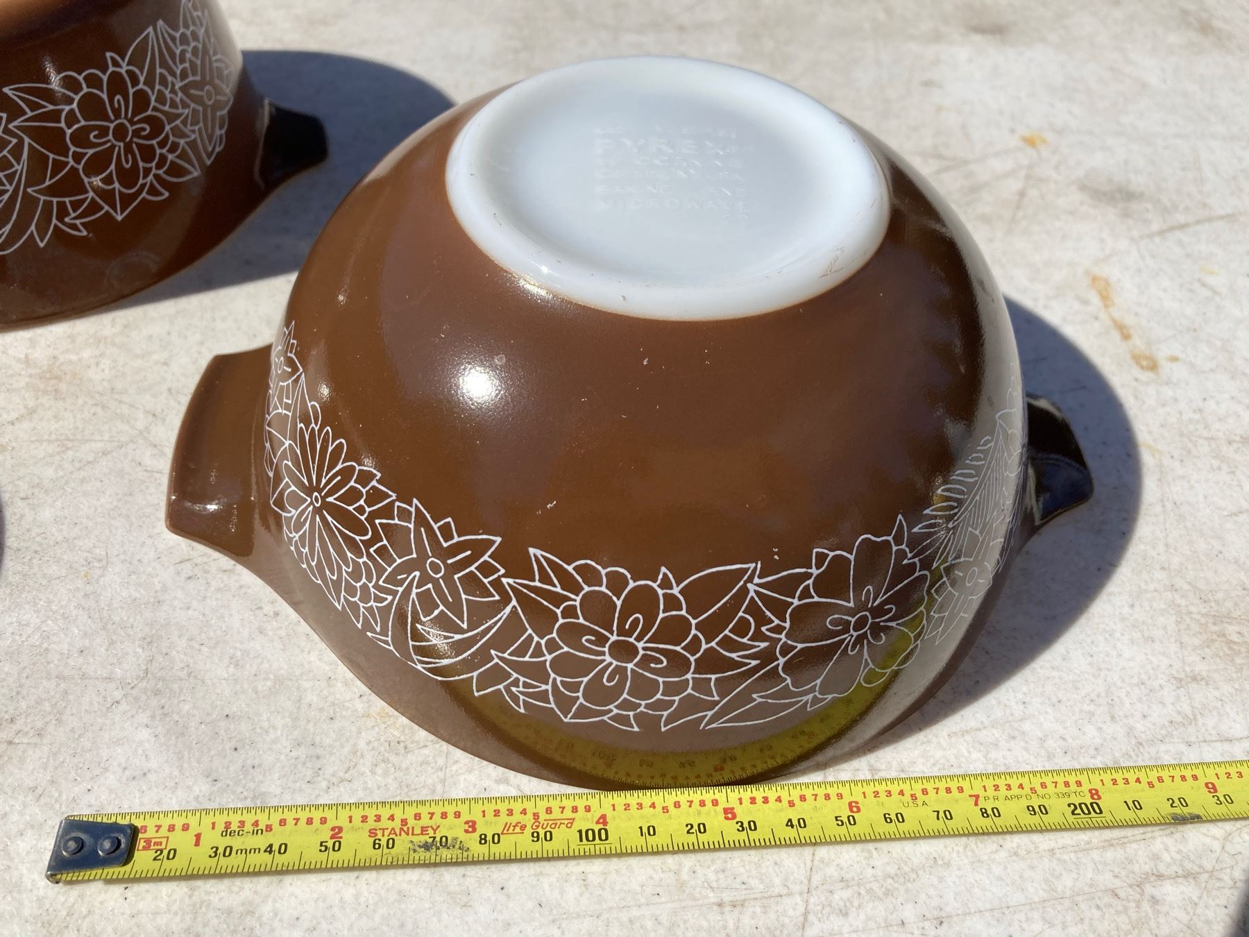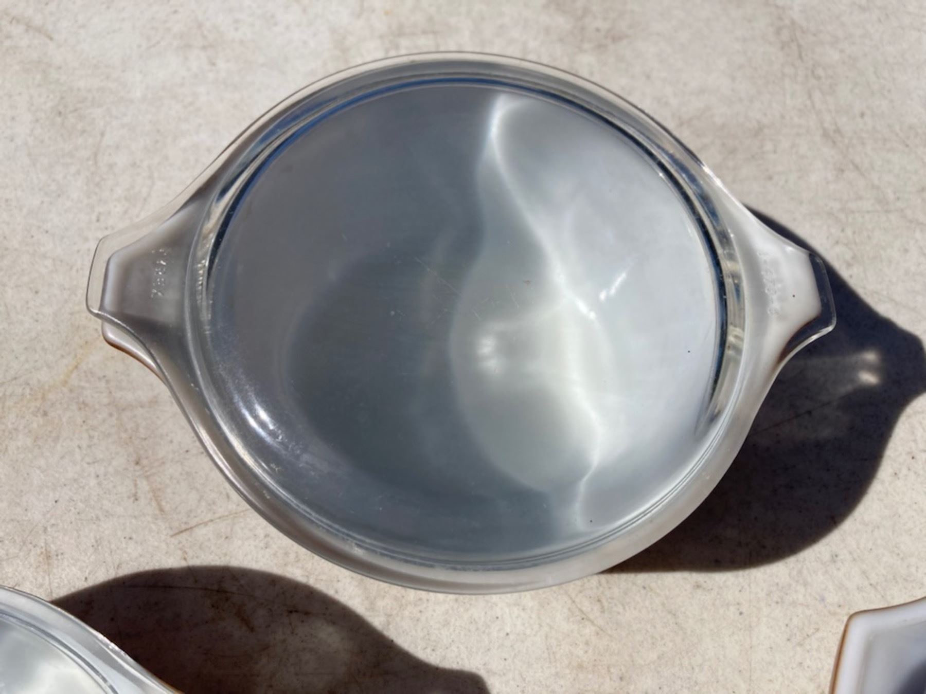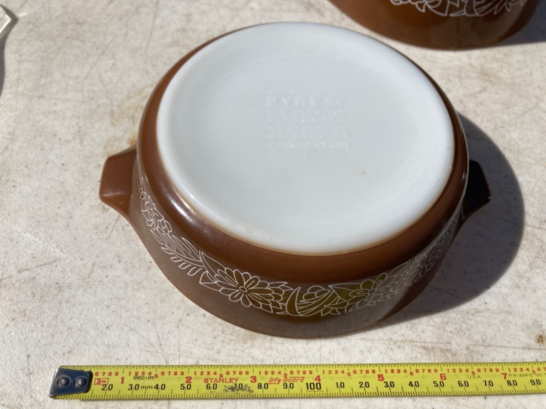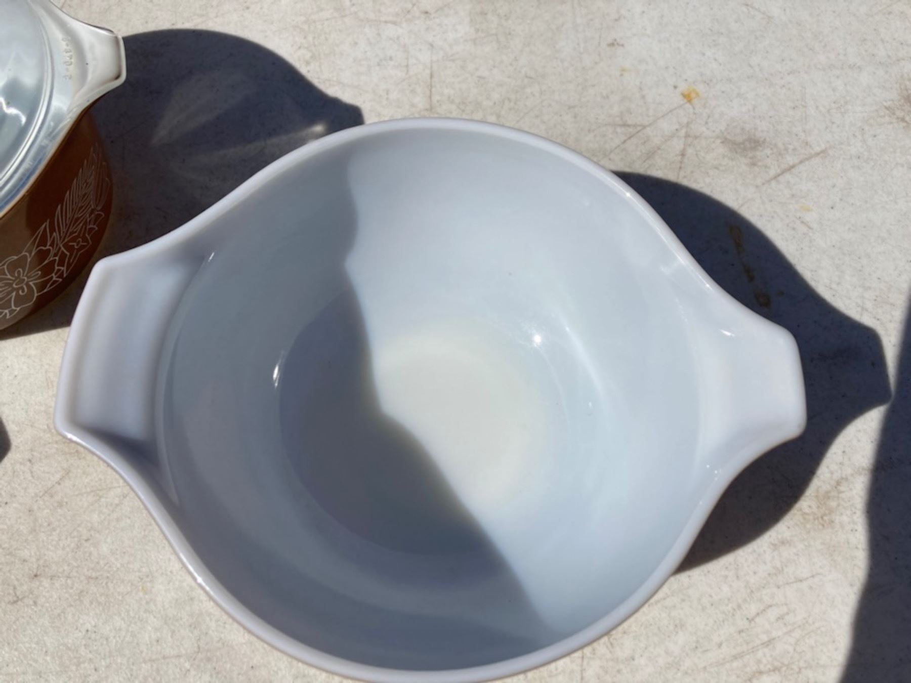 VINTAGE PYREX WOODLAND PATTERN BOWLS, LOT OF THREE WITH TWO LIDS