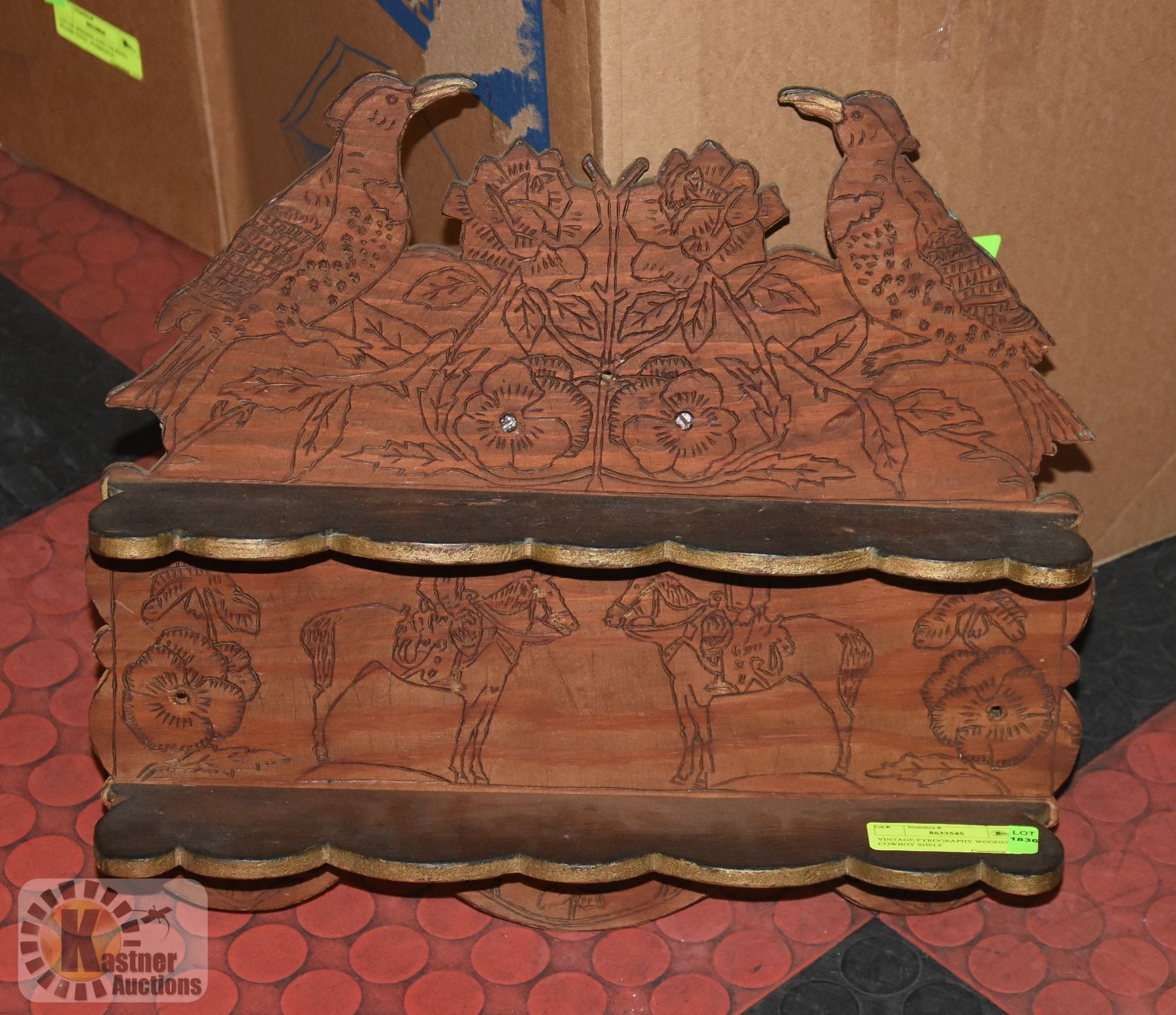 VINTAGE PYROGRAPHY WOODEN COWBOY SHELF