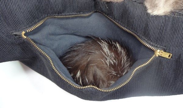 EXCELLENT VINTAGE CONDITION. SOME "FELTING" OF THE FUR AT THE TOP OF THE PURSE WHERE THE FUR RUBBED AGAINST THE COAT. OTHERWISE IN GREAT CONDITION. MEASURES 10" X 14". FRONT OF THE PURSE IS FUR, BACK OF THE PURSE IS FABRIC. EST. VALUE $110.-120.00