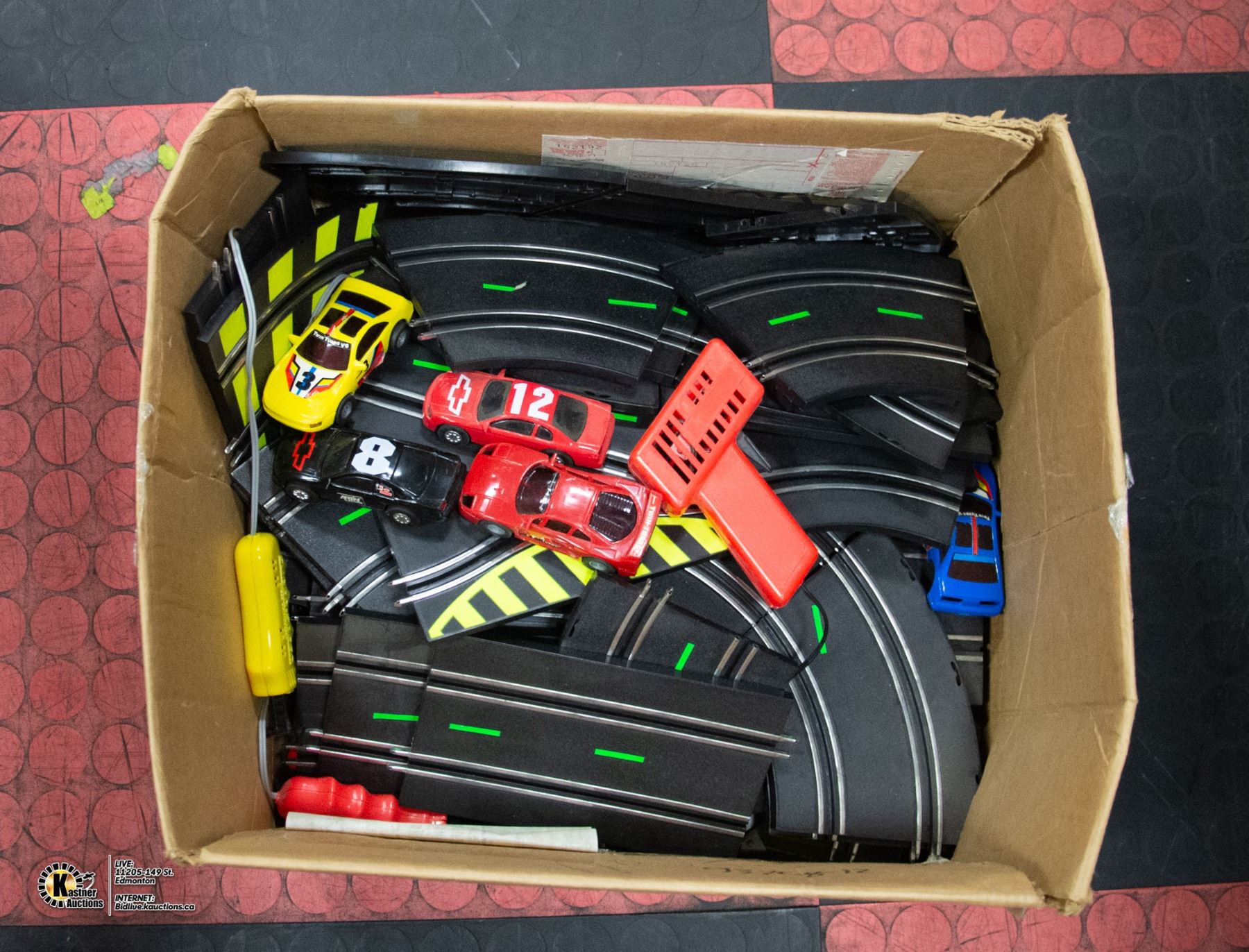 VINTAGE RACE SET WITH MULTIPLE SLOT CARS