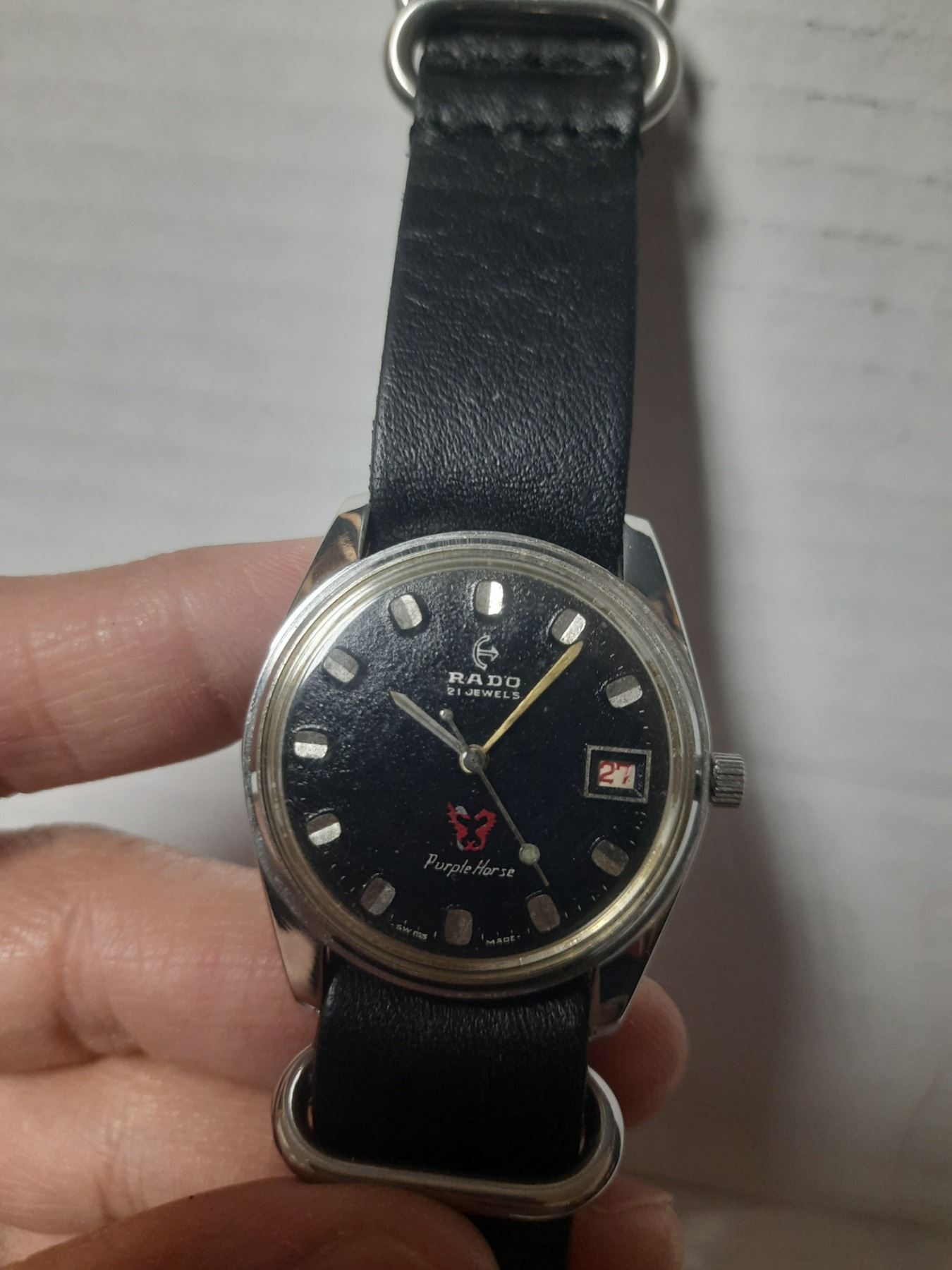 VINTAGE RADO PURPLE HORSE 21 J AUTO WATCH, DATE @3 , RUNS