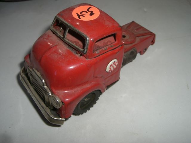 VINTAGE *RARE-FRICTION POWERED* METAL TRUCK TOY STAMPED *JAPAN* LOGOS ARE *SSS*. TOY IS MISSING REAR WHEELS!! TOY CAME OUT OF SAFE!! ***Coin, Currency & All Items Listed in this auction - Grades, Conditions and Values are not Safe Deposit Coins LLC Responsibilty. Grades, Condition and Values are determined by Consigner(s) & Buyers