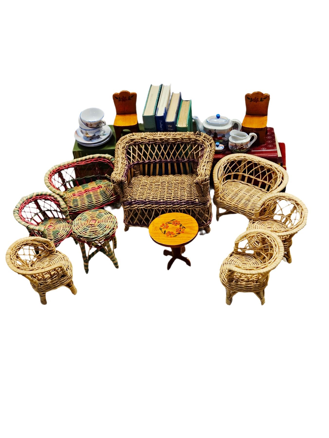 TEA SET OLD CANVAS BOOKS FOR PROPS