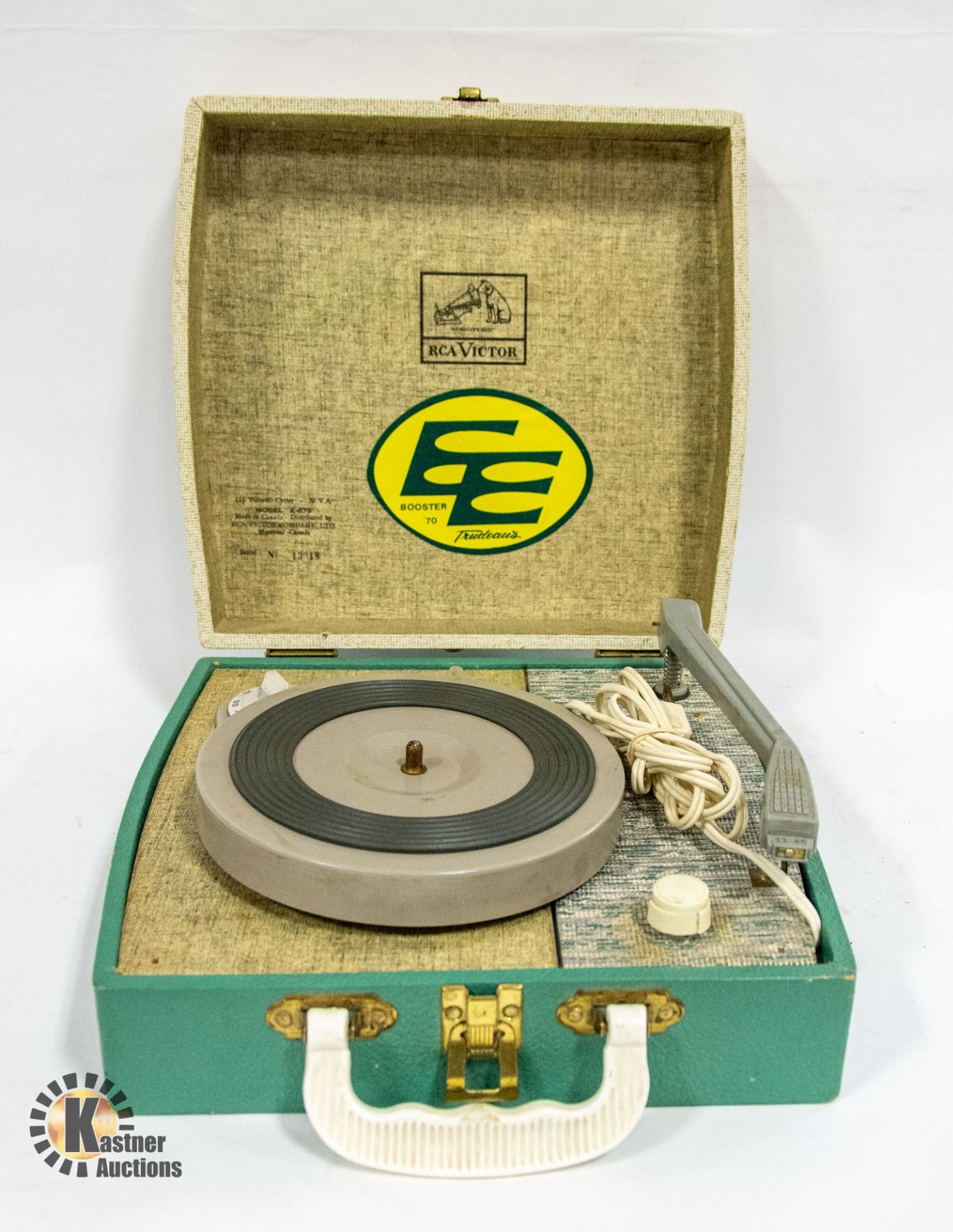 PORTABLE RECORD PLAYER "TESTED" **ALL ITEMS MUST BE REMOVED BY 5PM SATURDAY, MAY 6TH 2023. ALL REMAINING ITEMS WILL BE SUBJECT TO A $6.00 PER DAY STORAGE CHARGE. ANY ITEMS REMAINING AFTER MONDAY, MAY 22ND, 2023 WILL BE CONSIDERED FORFEITED. NO REFUNDS WILL BE ISSUED FOR FORFEITED ITEMS. TO SCHEDULE A PICK UP APPOINTMENT CLICK HERE