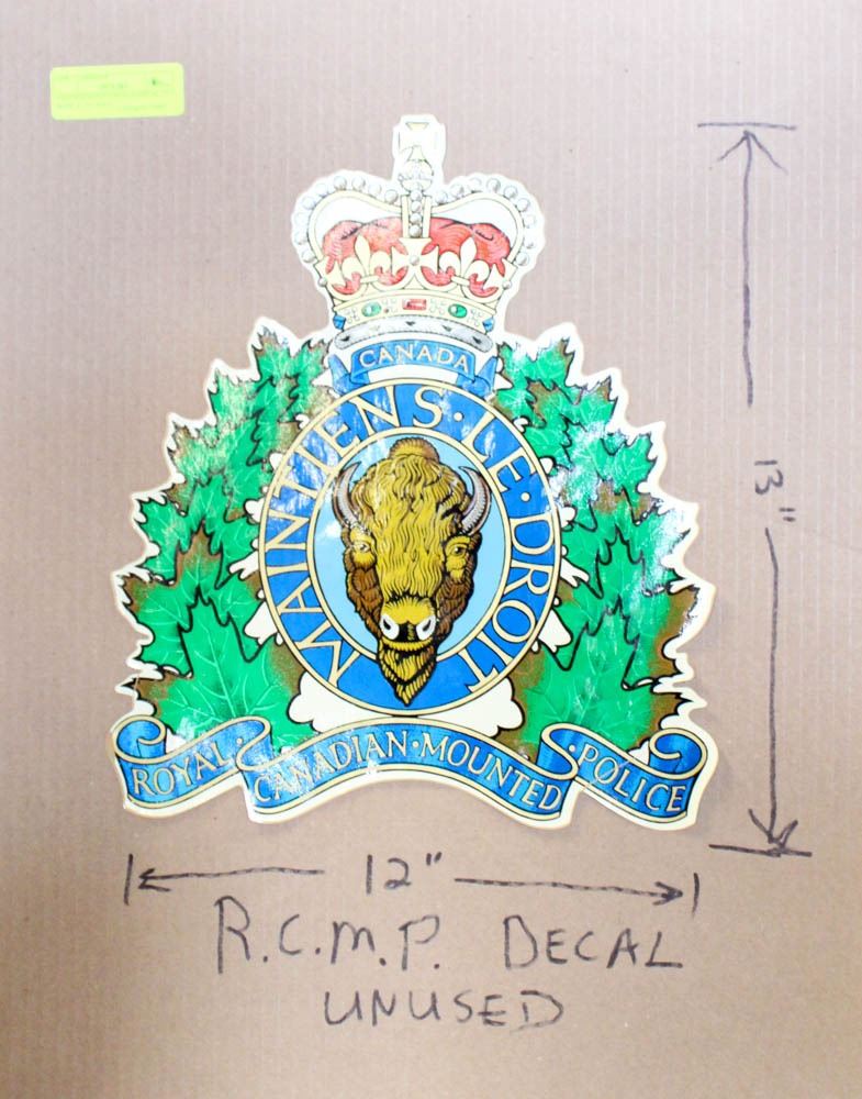 VINTAGE RCMP UNUSED DECAL 12 " WIDE X 13 " TALL