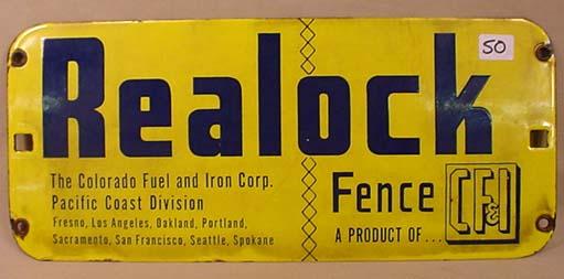 VINTAGE REALOCK FENCE PORCELAIN ENAMEL SIGN - OR, WA, CA STATES - Approx. 14" by 6"