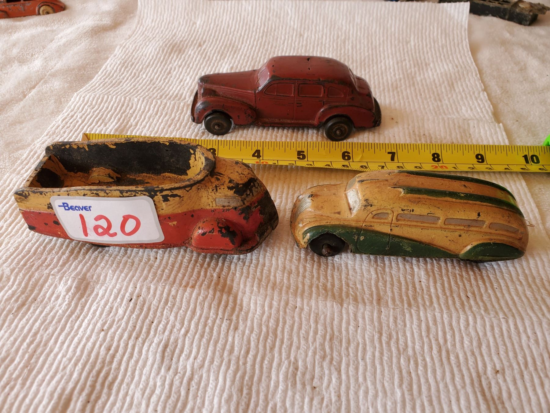 VINTAGE RED AUBURN CAR PLUS 2 SUN RUBBER TRUCKS "HARD RUBBER" ORIGINAL PAINT
