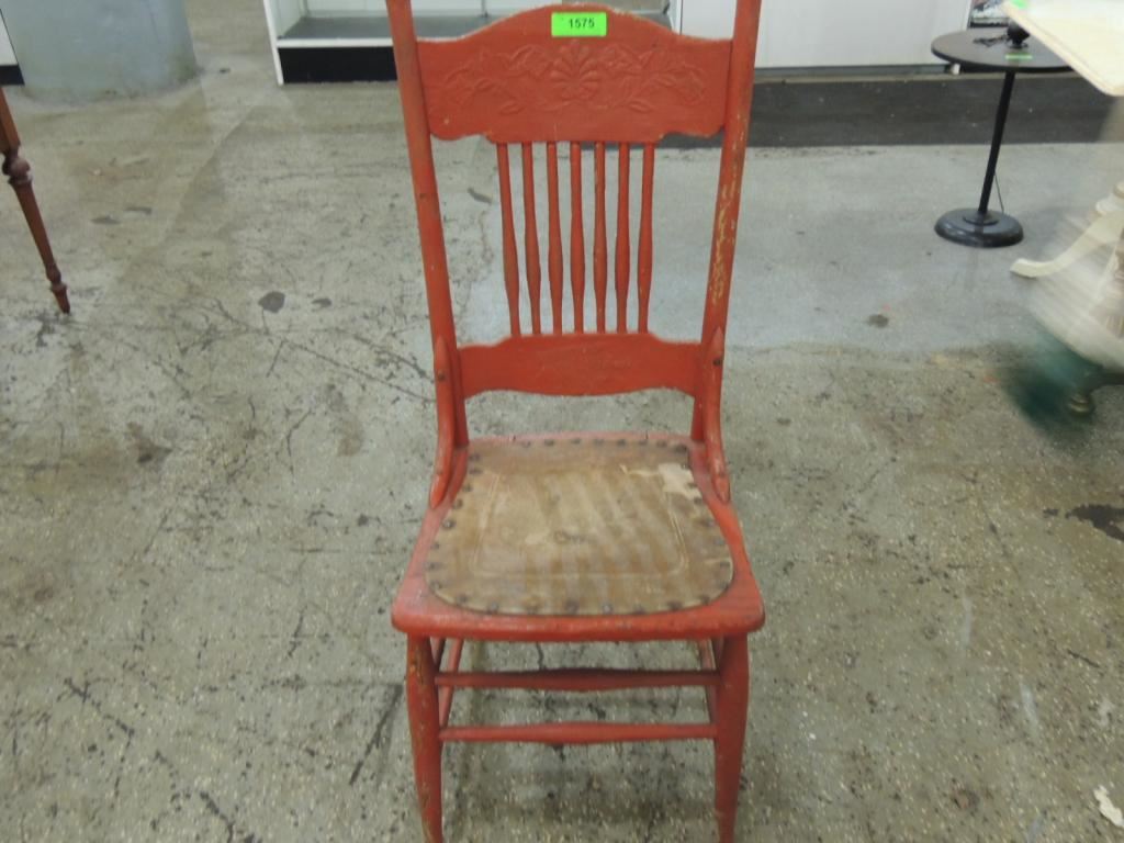 VINTAGE RED DINING CHAIR GREAT CONDITION FARM CHAIR AS SHOWN SEE PHOTO FOR MORE DETAILS.