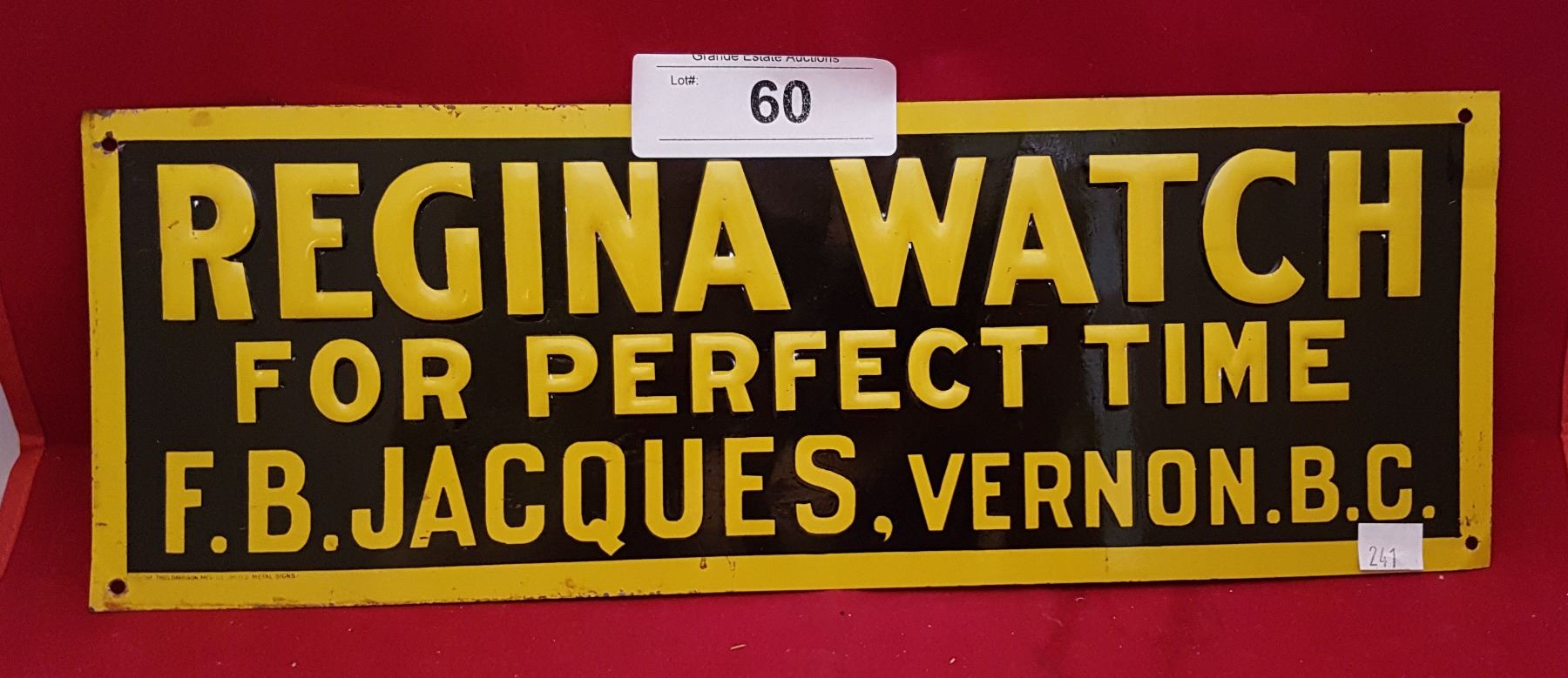 VINTAGE REGINA WATCH EMBOSSED SIGN